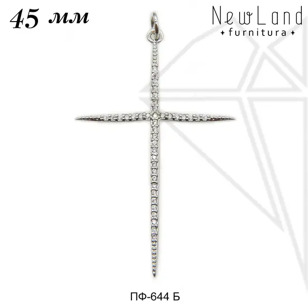 Подвеска в форме креста класса люкс с родированным покрытием (по латуни).