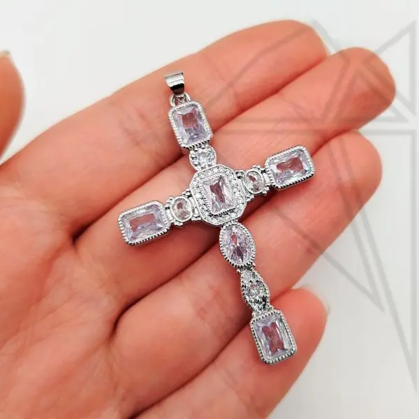 Подвеска крестик Дольче с белыми (прозрачными) фианитами класса люкс с позолоченным покрытием (по латуни)