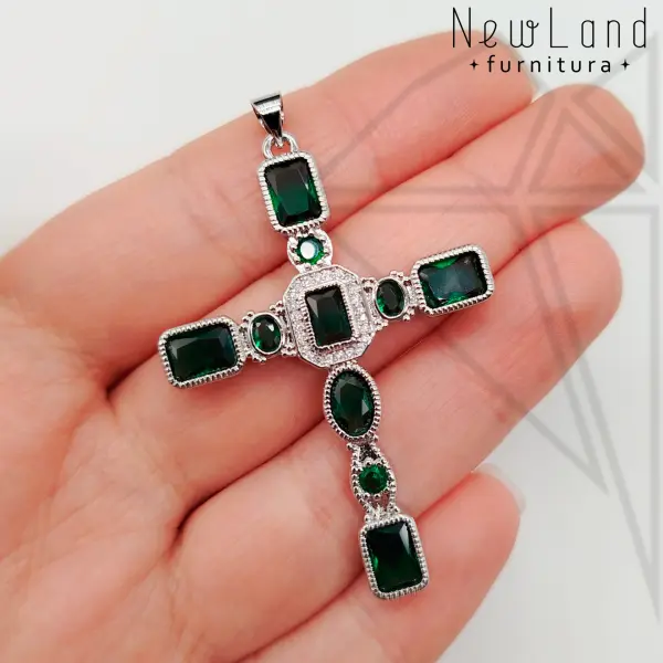 Подвеска крестик Дольче с зелеными фианитами класса люкс с родированным покрытием (по латуни)