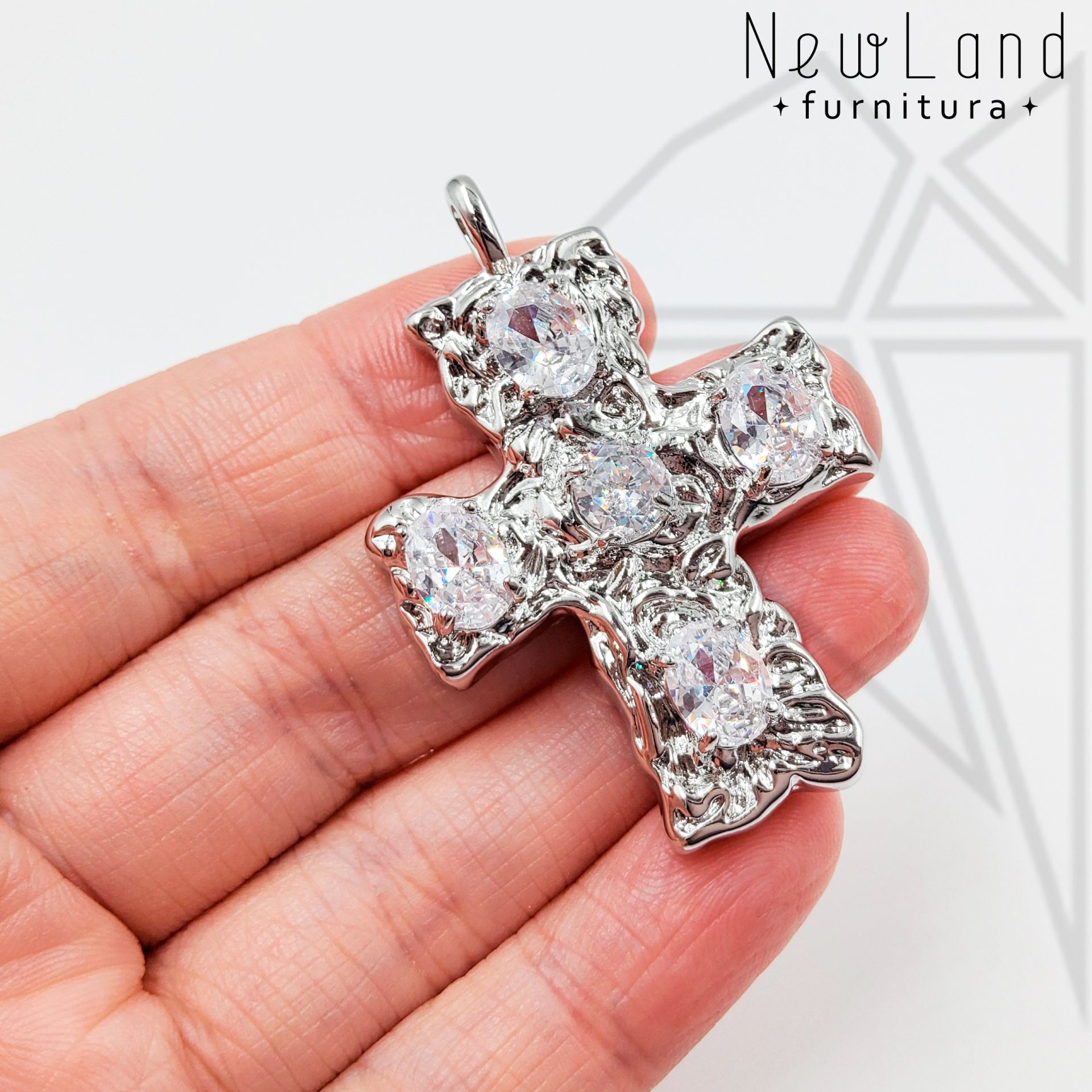 Подвеска в форме креста с фианитами класса люкс с родированным покрытием (по латуни).