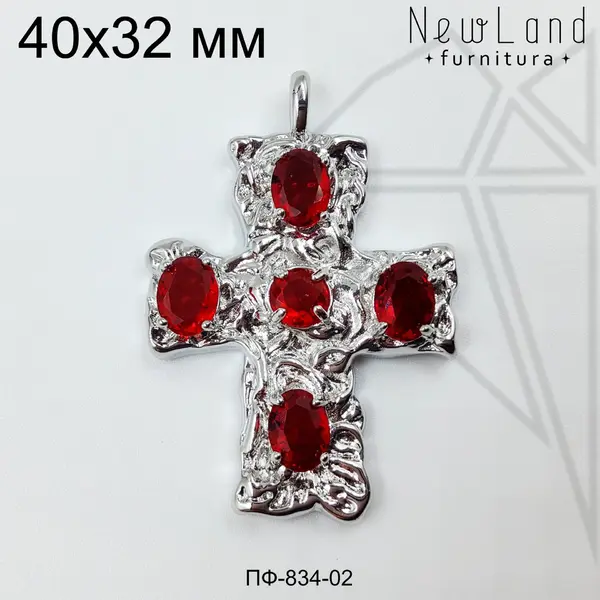Подвеска в форме креста с красными фианитами класса люкс с родированным покрытием (по латуни).