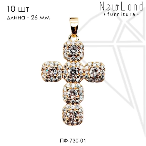 Подвеска в форме креста класса люкс с позолоченным покрытием (по латуни).