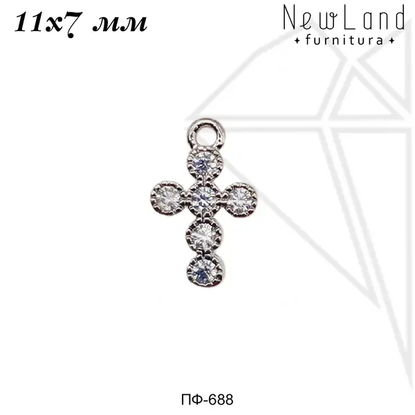 Подвеска в форме креста класса люкс с родированным покрытием (по латуни).