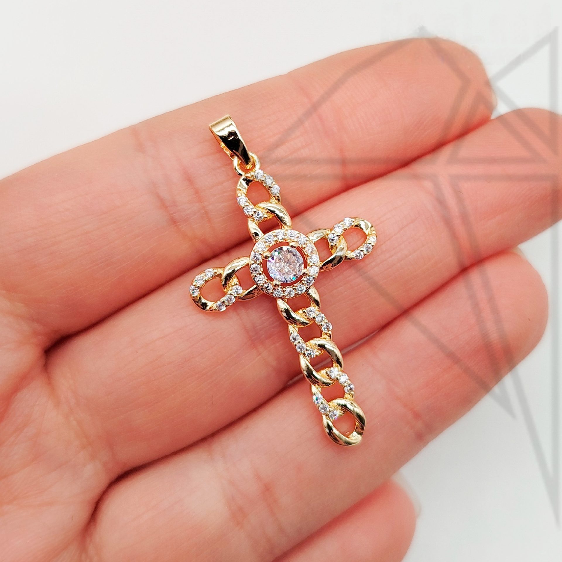 Будьте первым, кто оставил отзыв на «Подвеска крестик цепочка с белыми фианитами 32 мм (золото)»