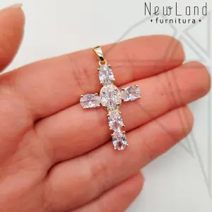 Подвеска крестик с черными фианитами класса люкс с родированным покрытием (по латуни)