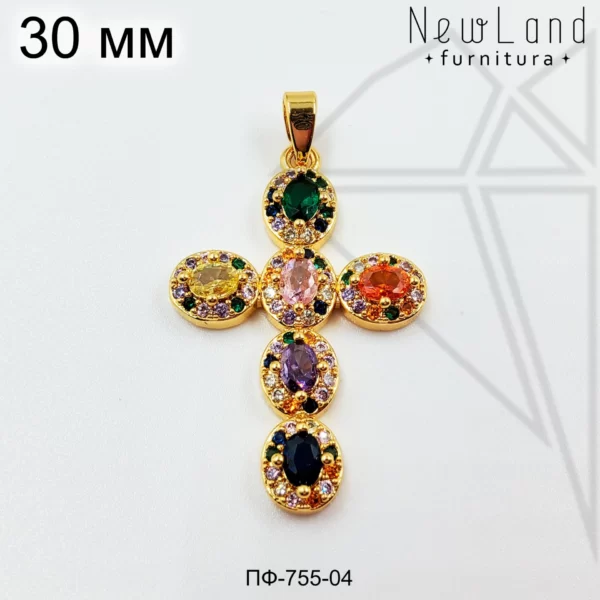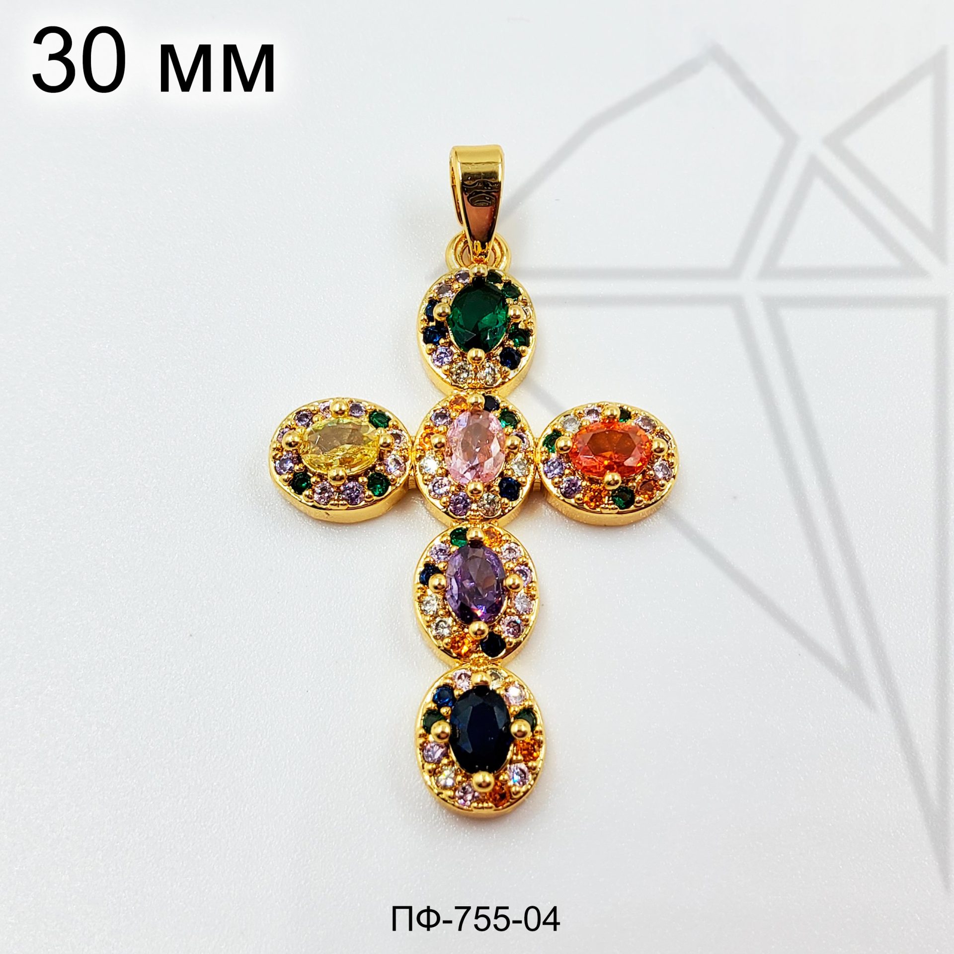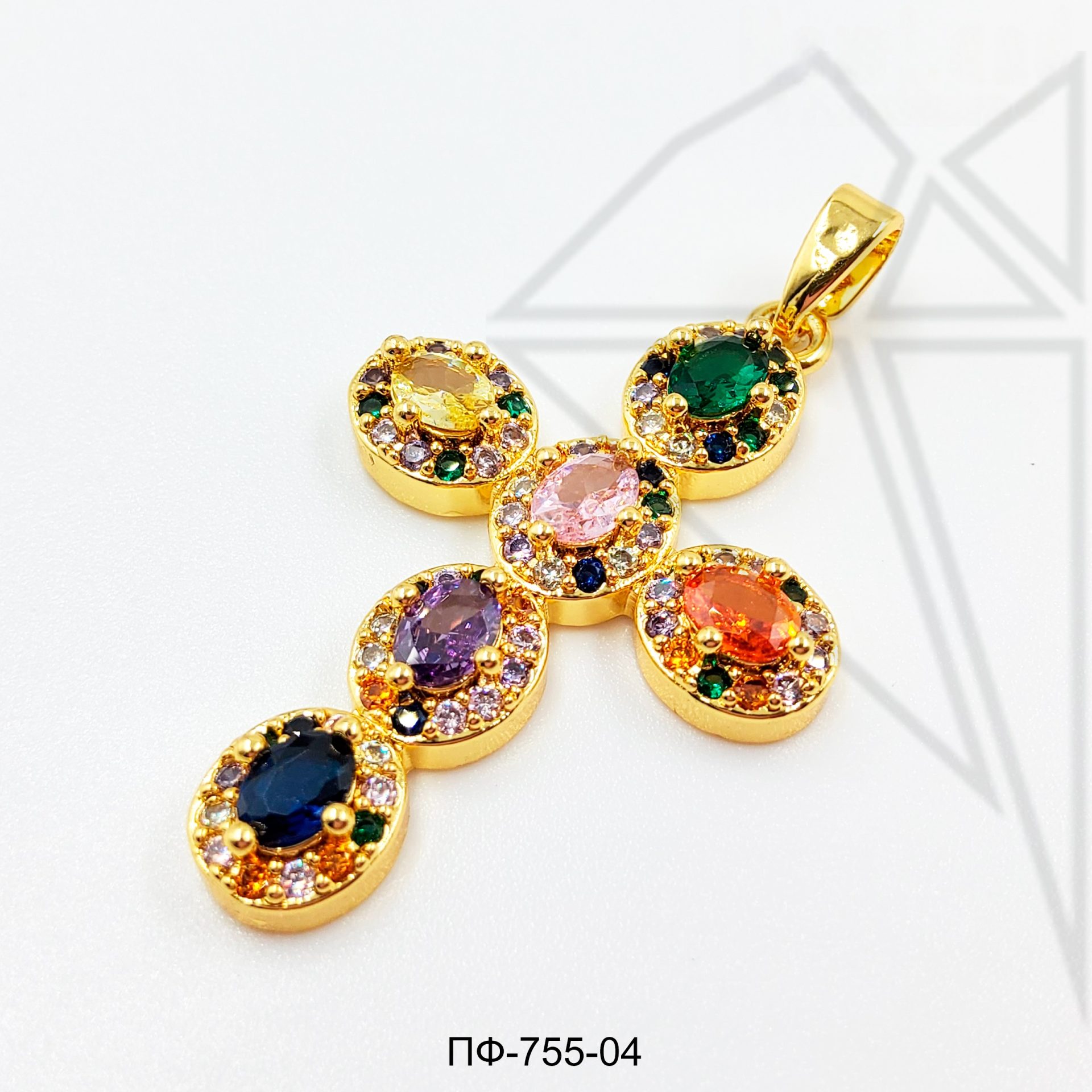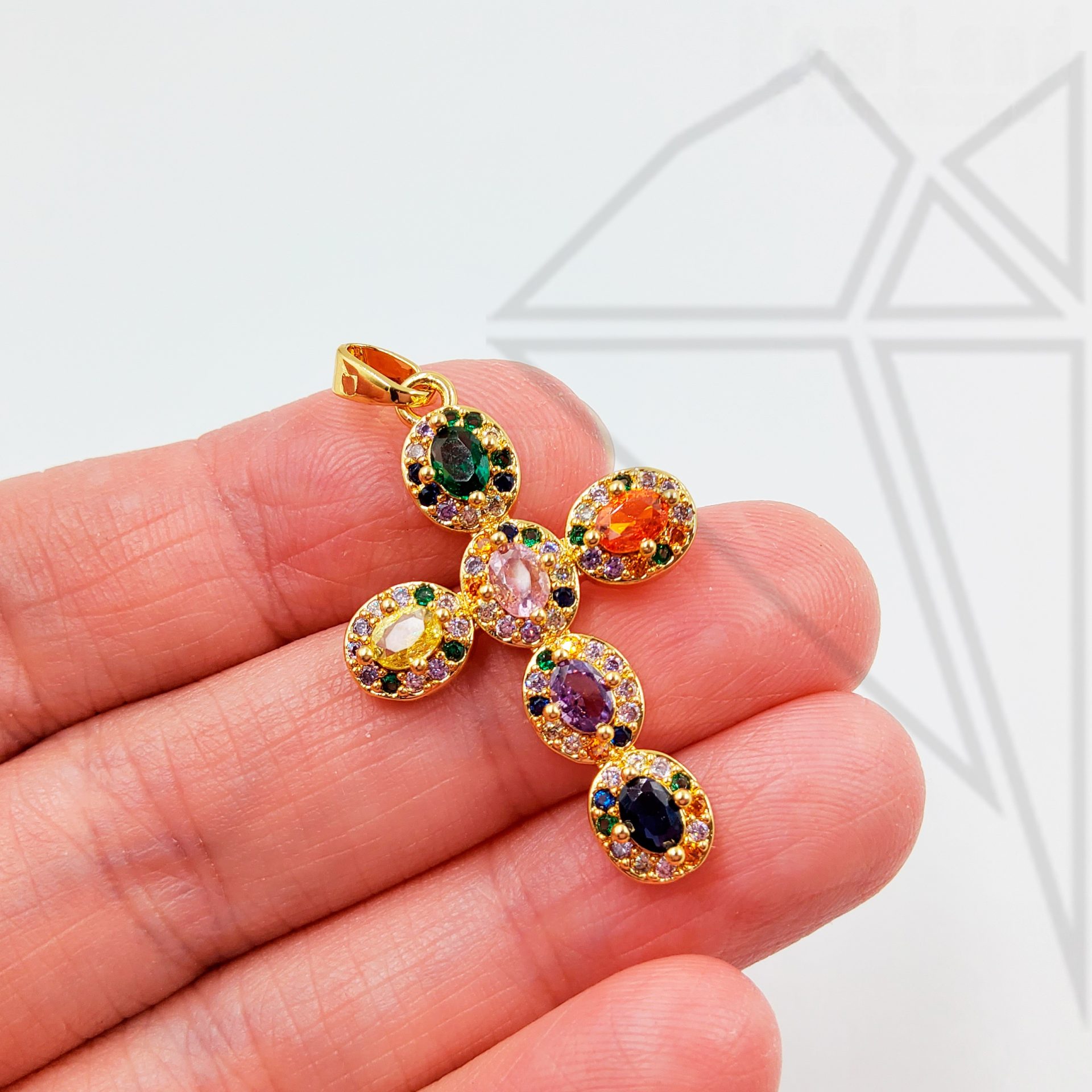 Подвеска крестик с цветными фианитами класса люкс с позолоченным покрытием (по латуни)
