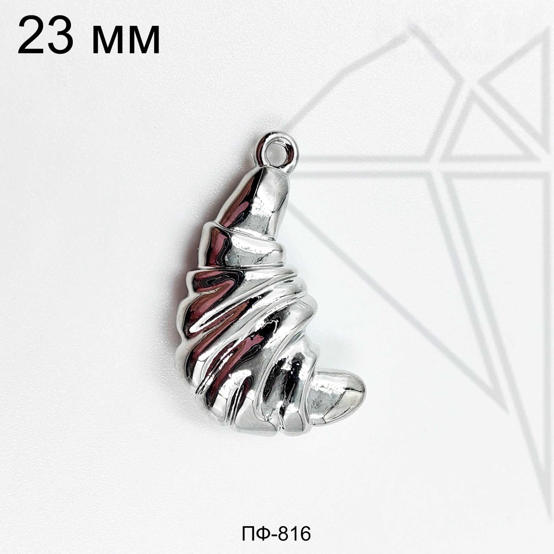 Подвеска в форме круассана 23 мм класса люкс с родированным покрытием (по латуни).