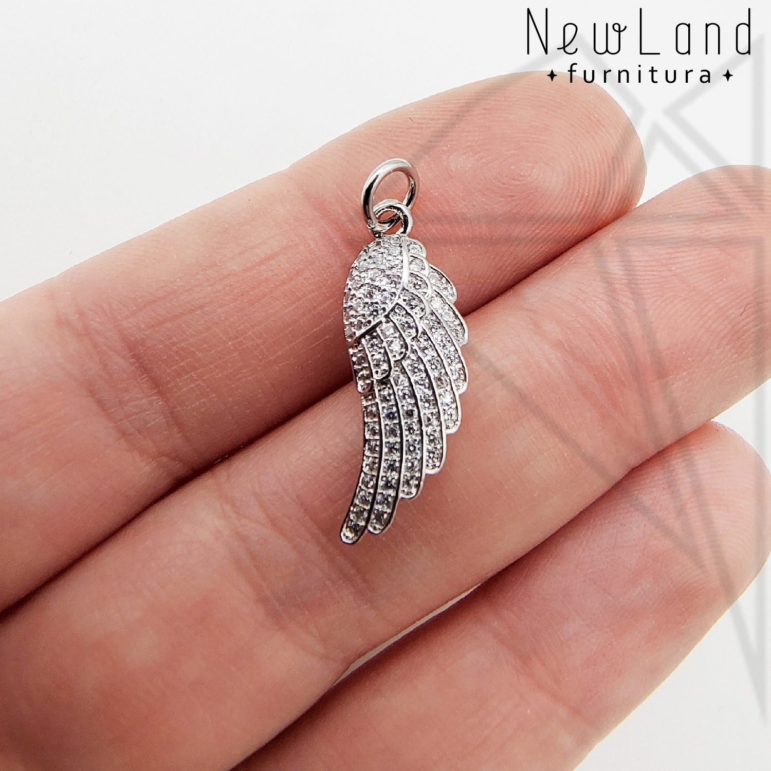 Подвеска в форме крылышка класса люкс с родированным покрытием (по латуни).