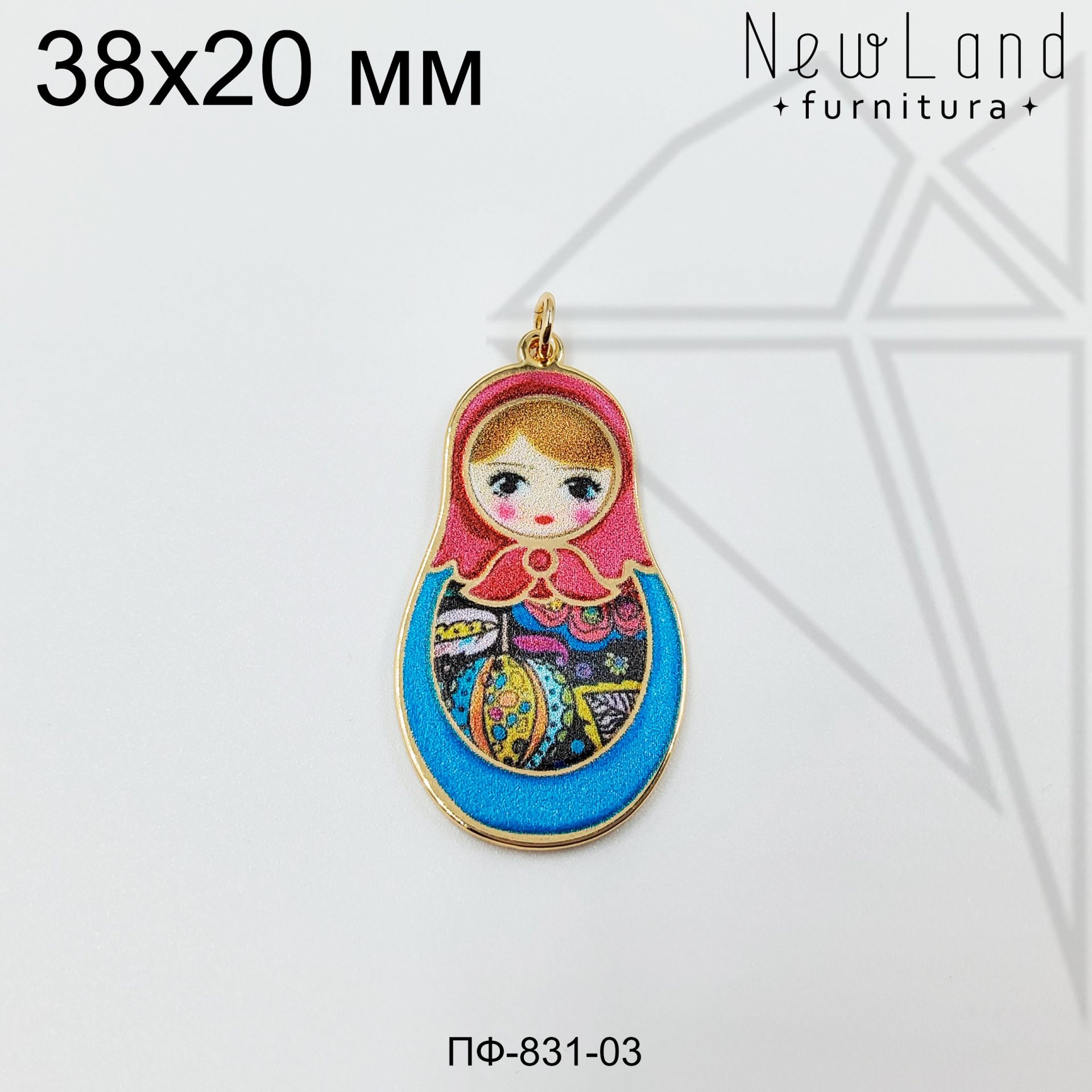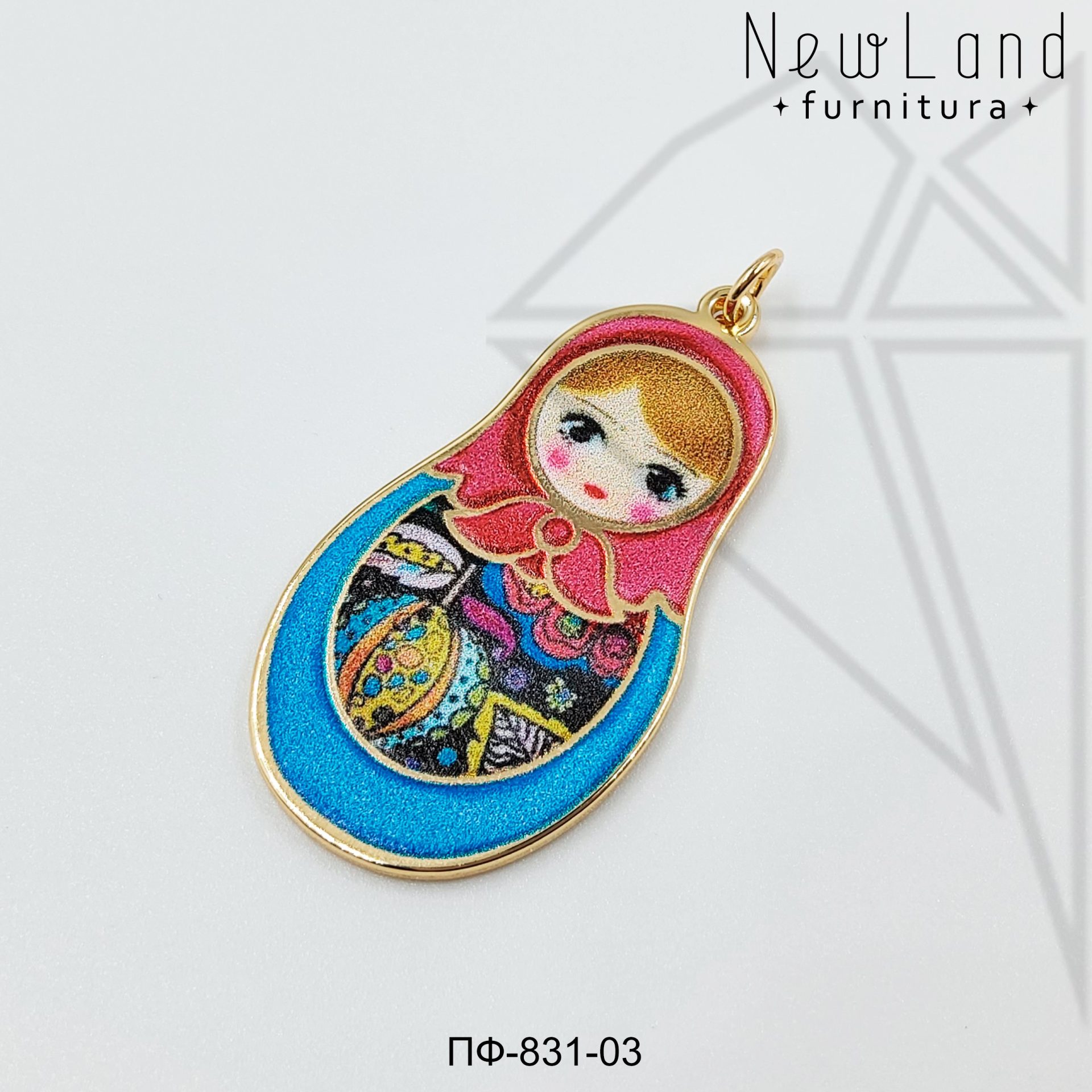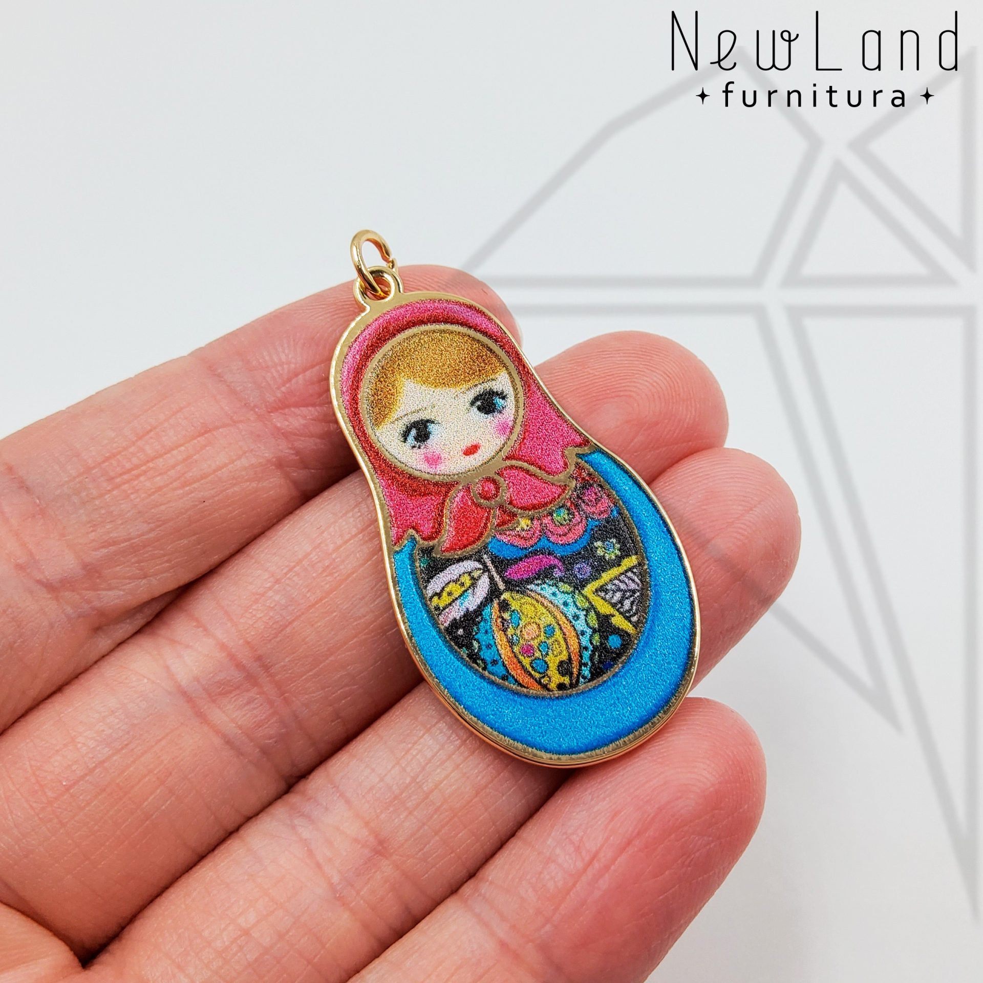 Подвеска матрешка красно-синяя класса люкс с позолоченным покрытием (по латуни)