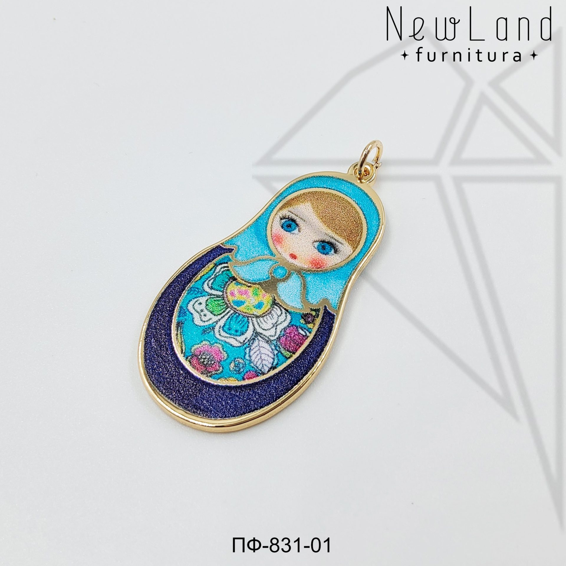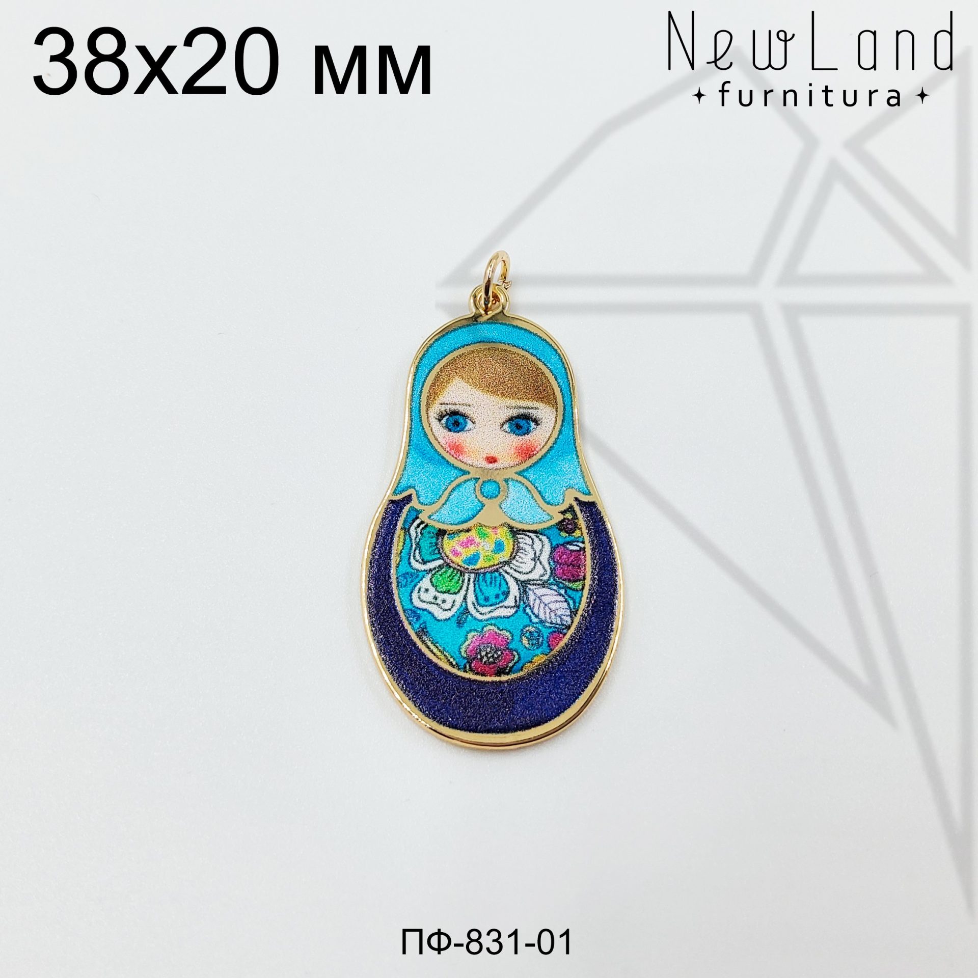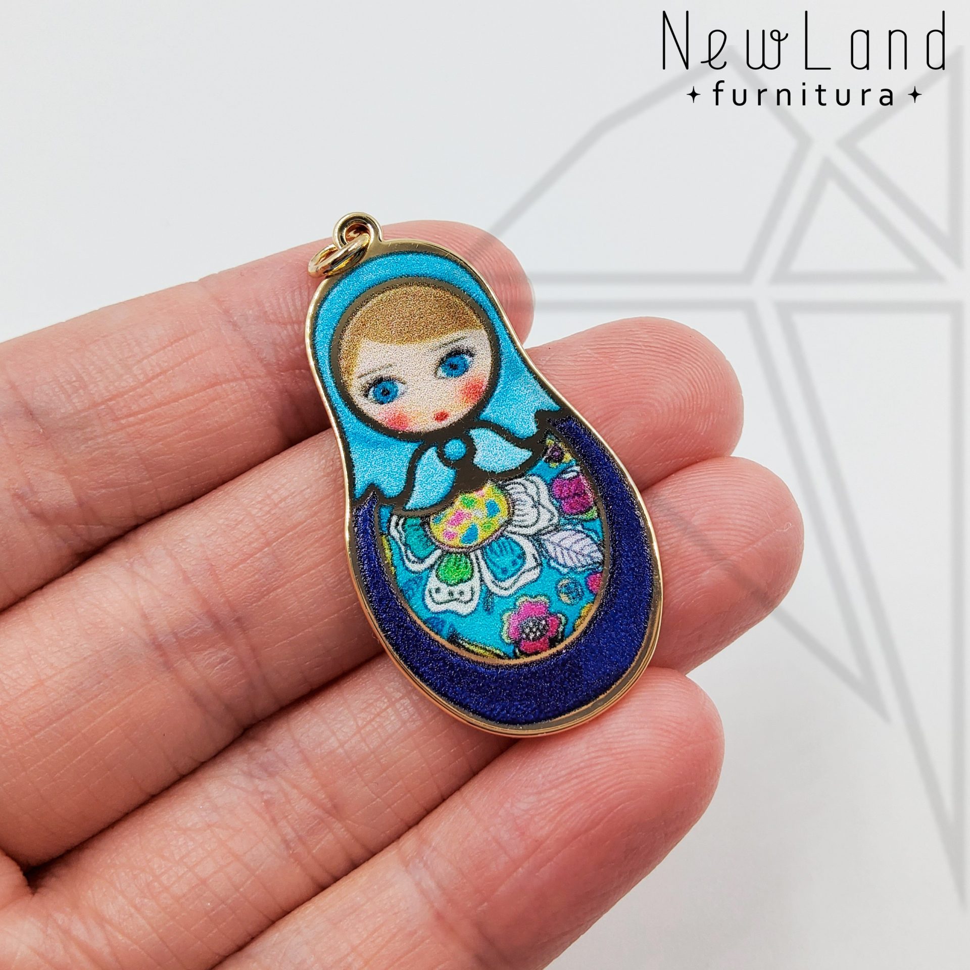 Подвеска матрешка синяя класса люкс с позолоченным покрытием (по латуни)