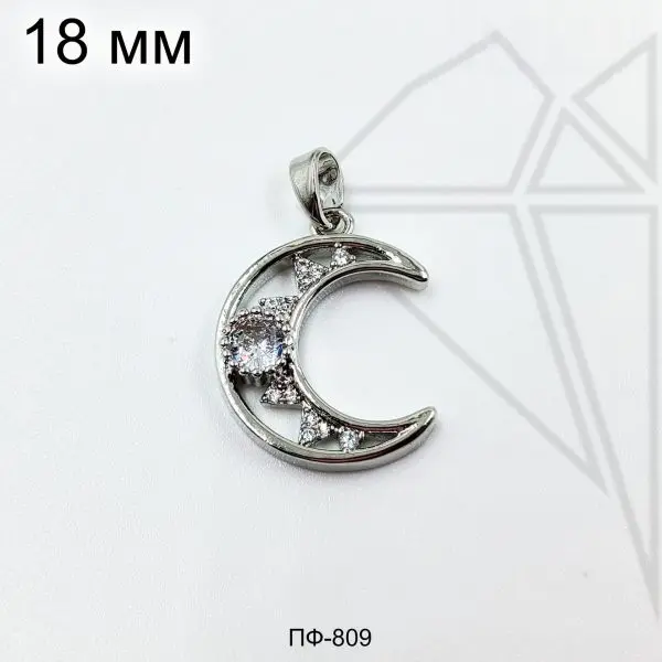 Подвеска в форме месяца класса люкс с родированным покрытием (по латуни).