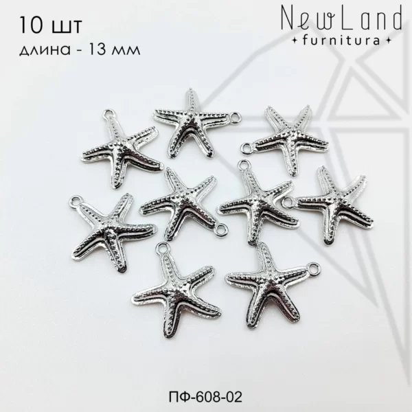 Подвески в форме морских звездочек класса люкс с родированным покрытием (по латуни).
