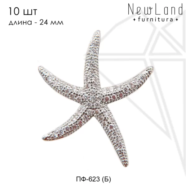 Подвески в форме морской звездочки класса люкс с родированным покрытием (по латуни).