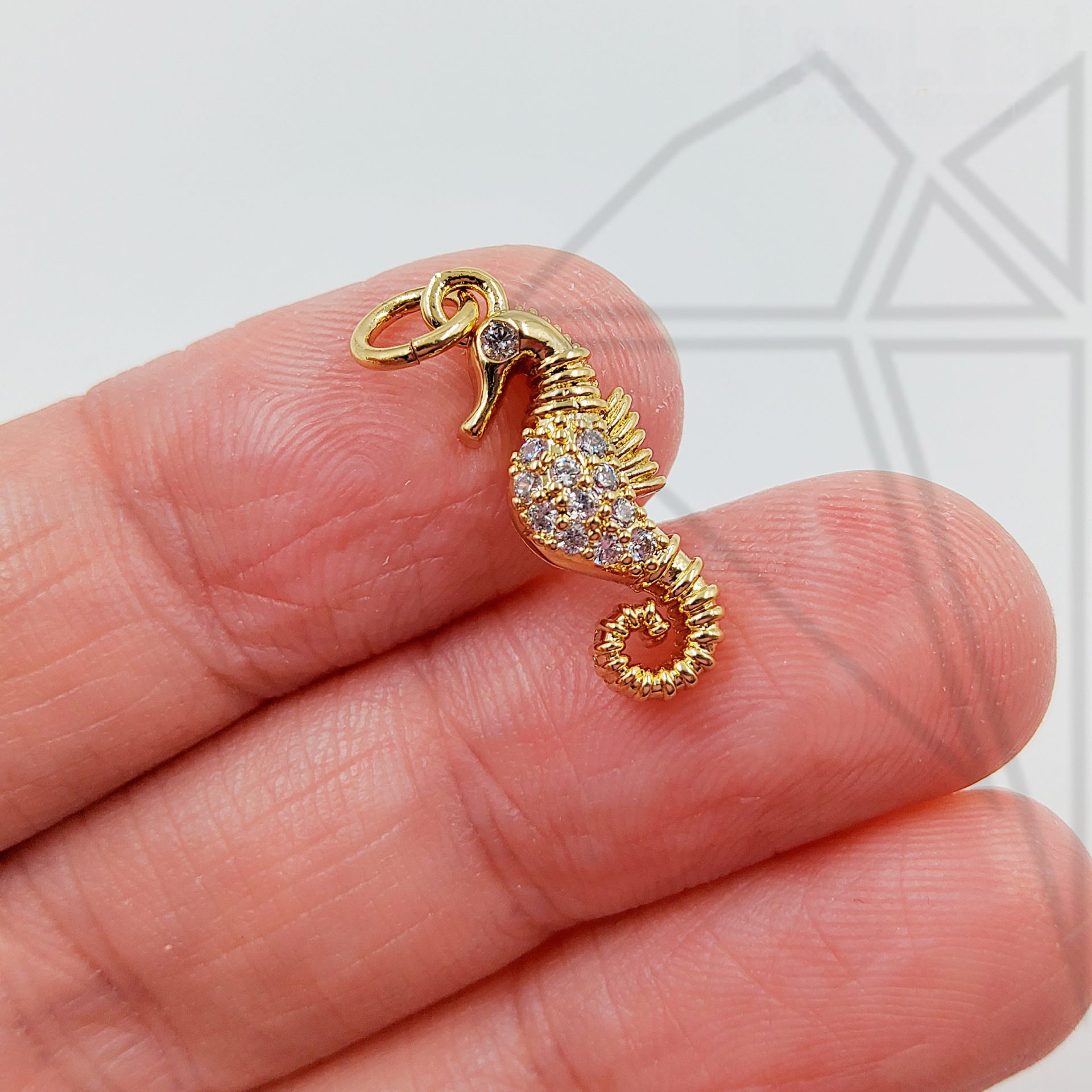 Подвеска морской конек класса люкс с позолоченным покрытием (по латуни).