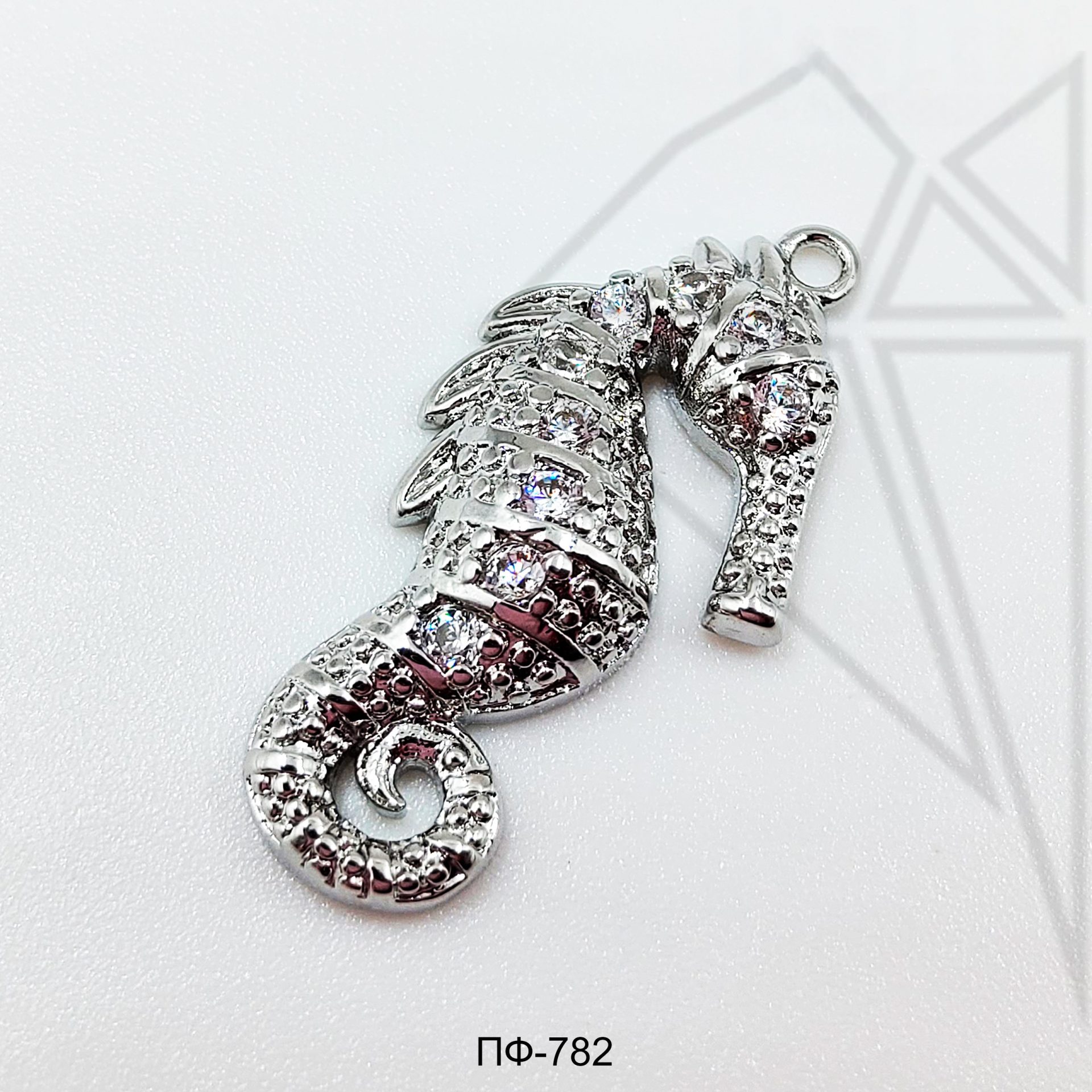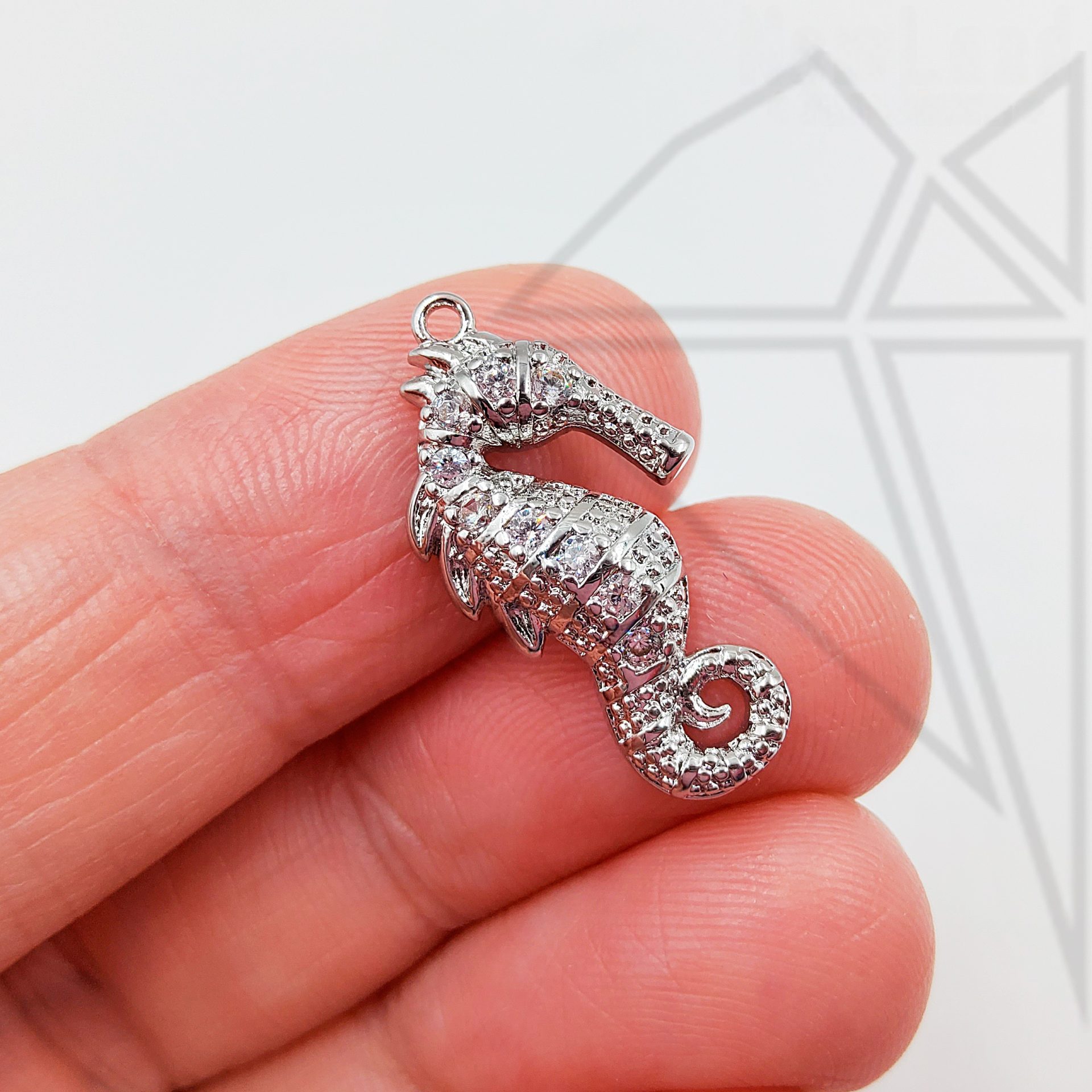 Подвеска морской конек класса люкс с родированным покрытием (по латуни).