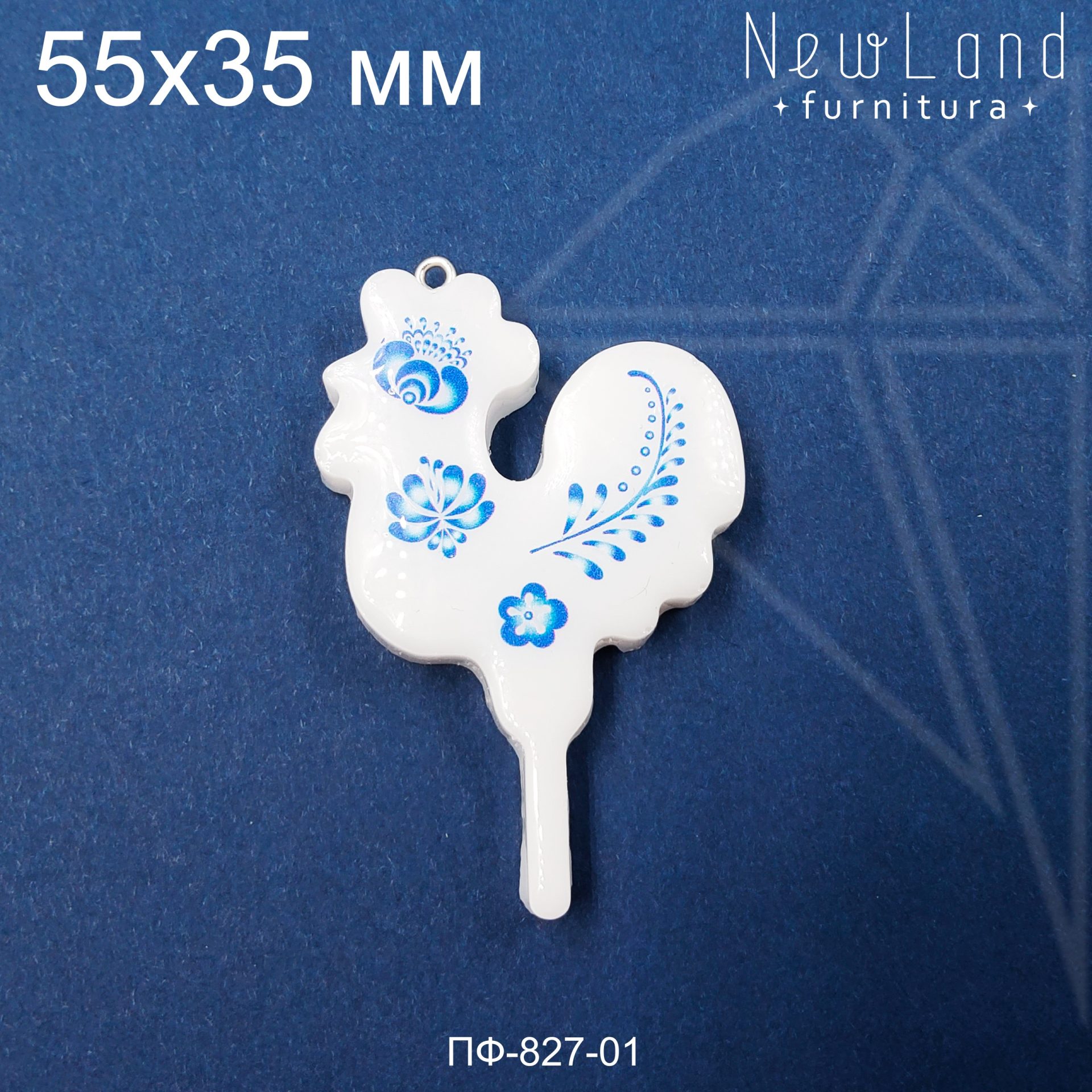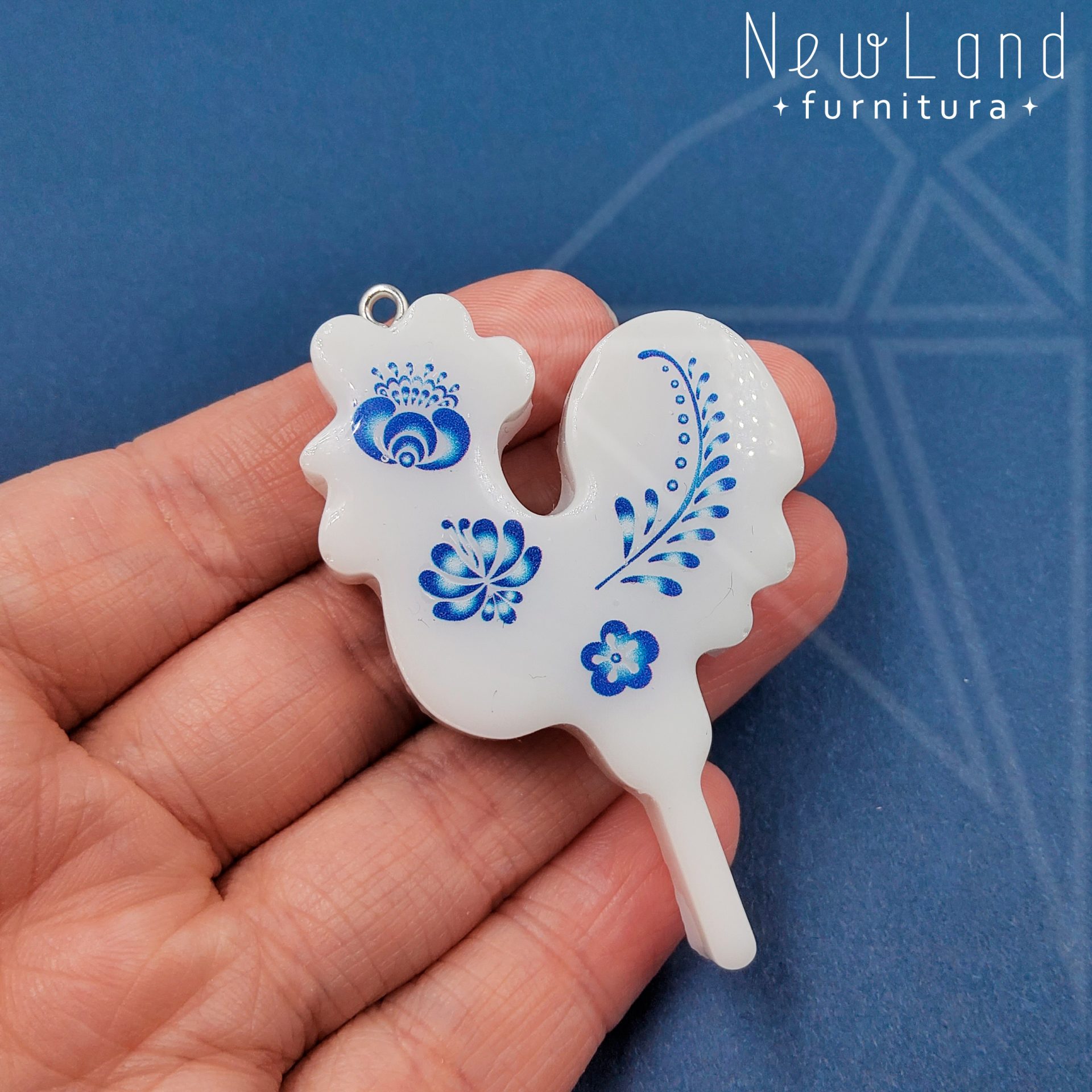 Подвеска петушок Гжель РУЧНОЙ РАБОТЫ выполнена из эпоксидной смолы белого цвета. Подвесное колечко класса люкс родированным покрытием (по латуни)