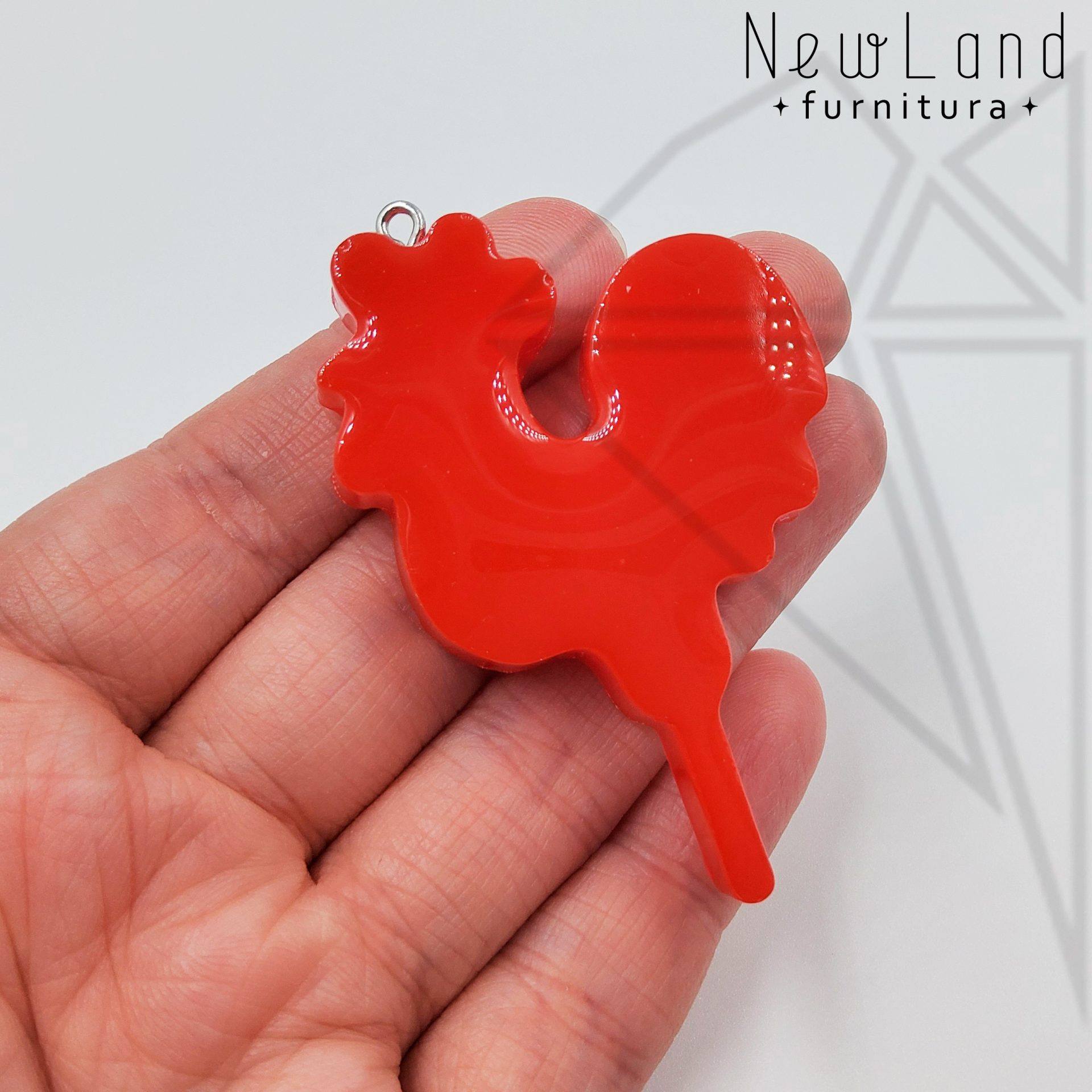 Подвеска петушок Гжель РУЧНОЙ РАБОТЫ выполнена из эпоксидной смолы красного цвета. Подвесное колечко класса люкс родированным покрытием (по латуни)