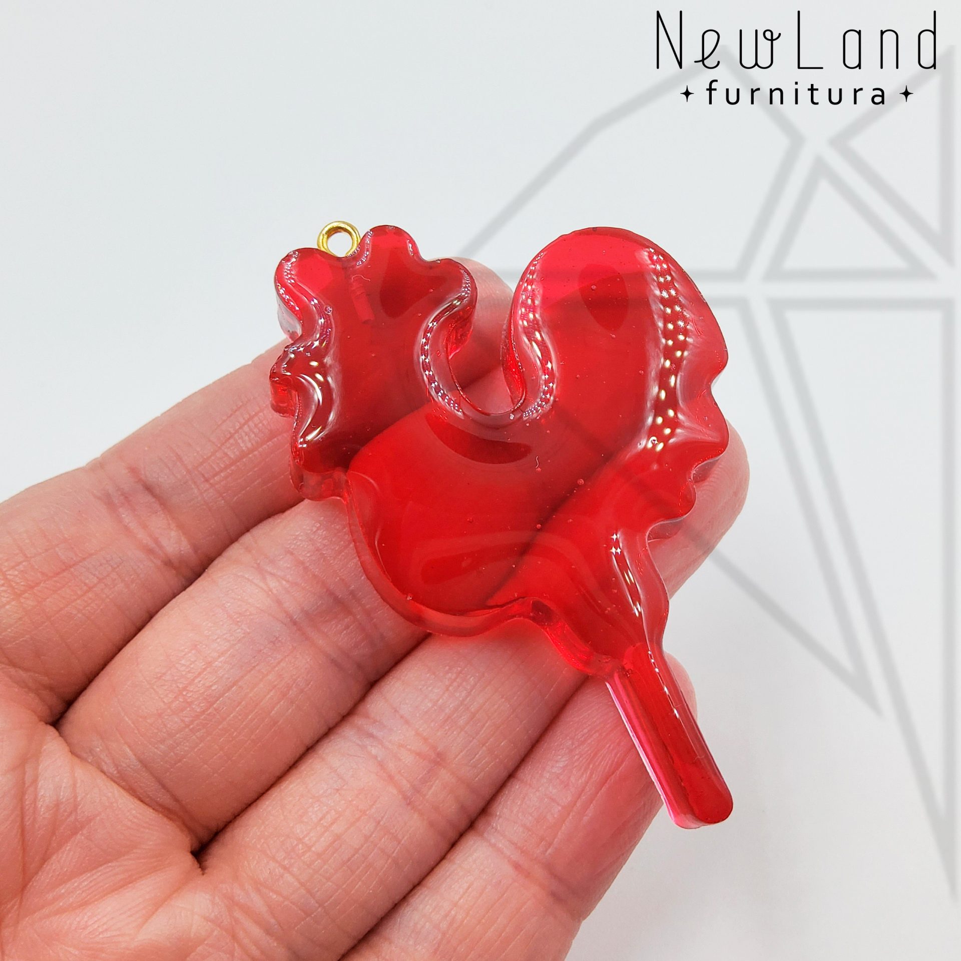 Подвеска петушок РУЧНОЙ РАБОТЫ выполнена из эпоксидной смолы красного прозрачного цвета. Подвесное колечко класса люкс с позолоченным покрытием (по латуни)