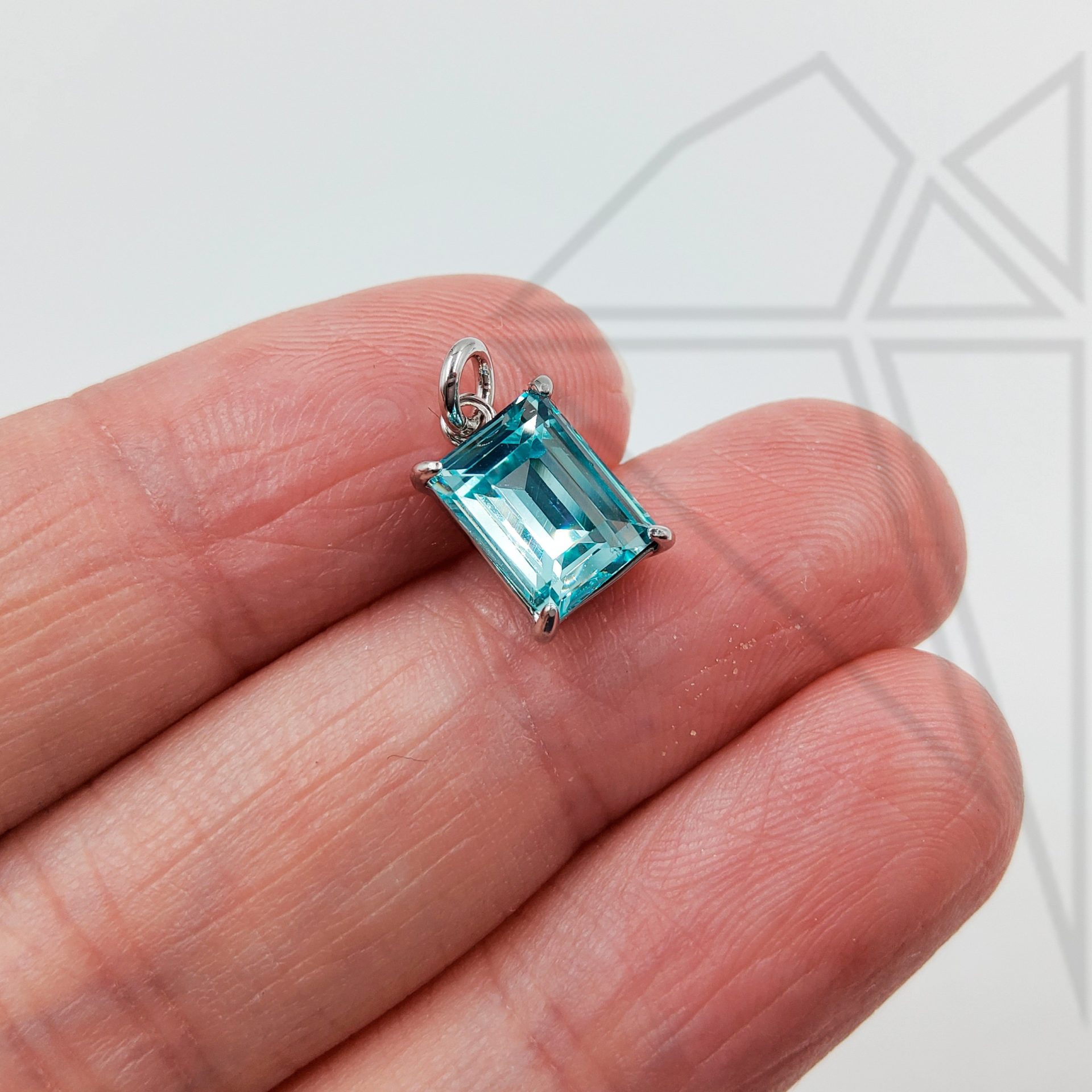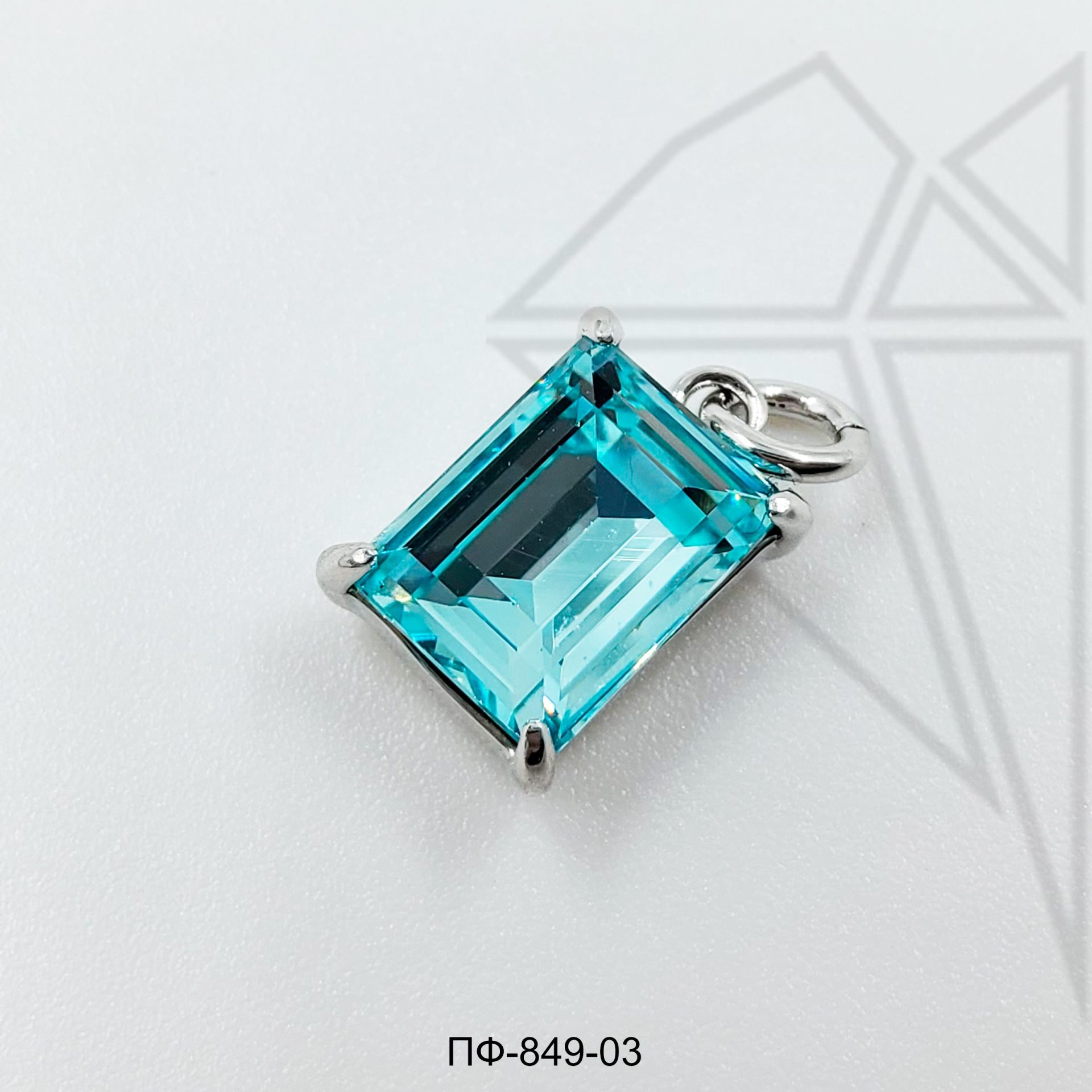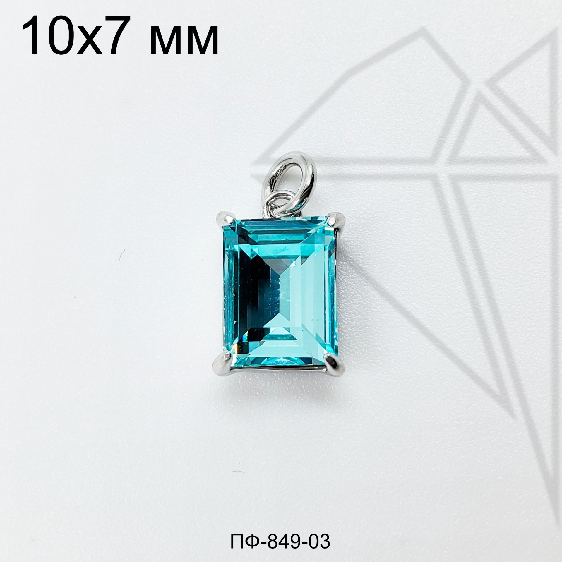 Подвеска прямоугольная с синим фианитом класса люкс с родированным покрытием (по латуни)