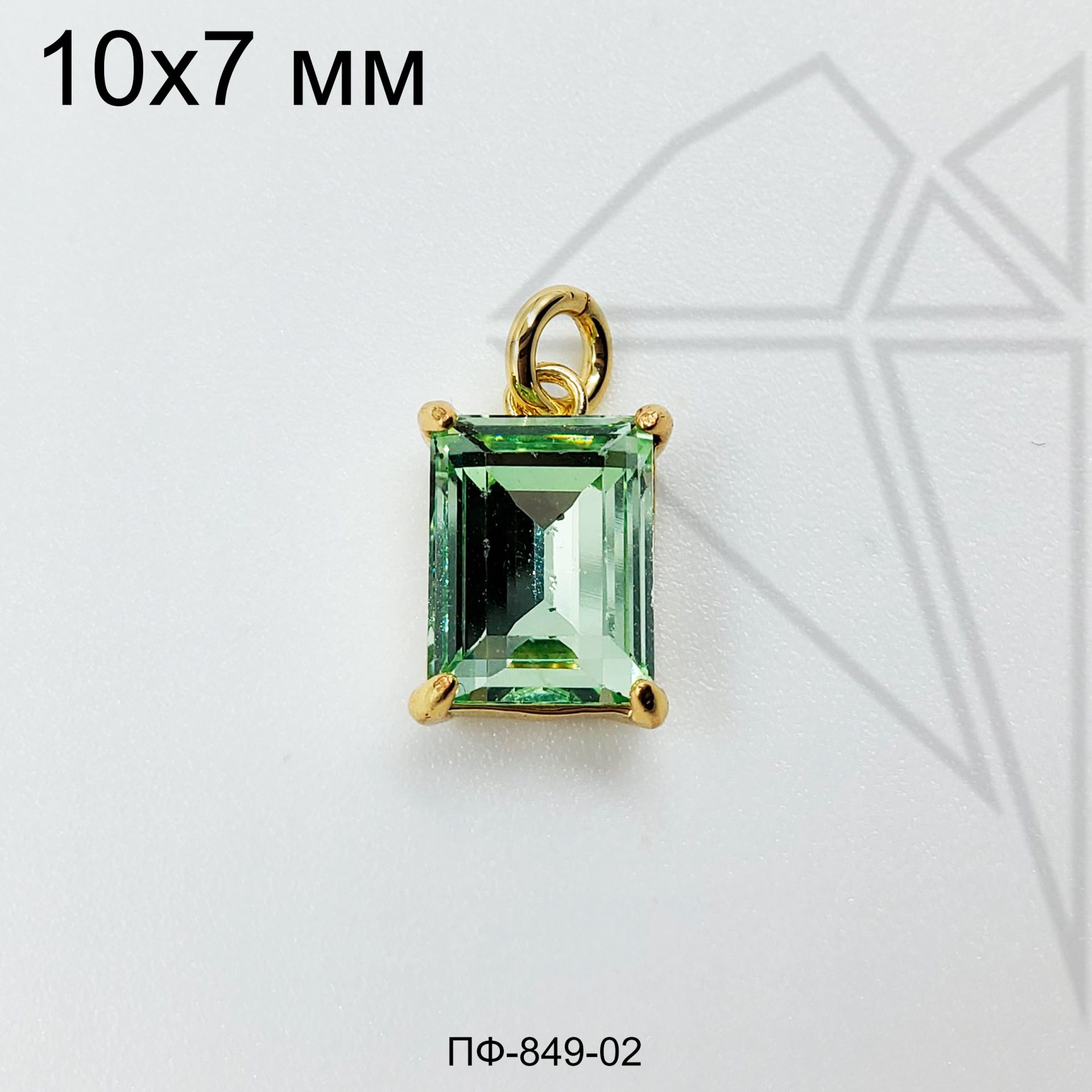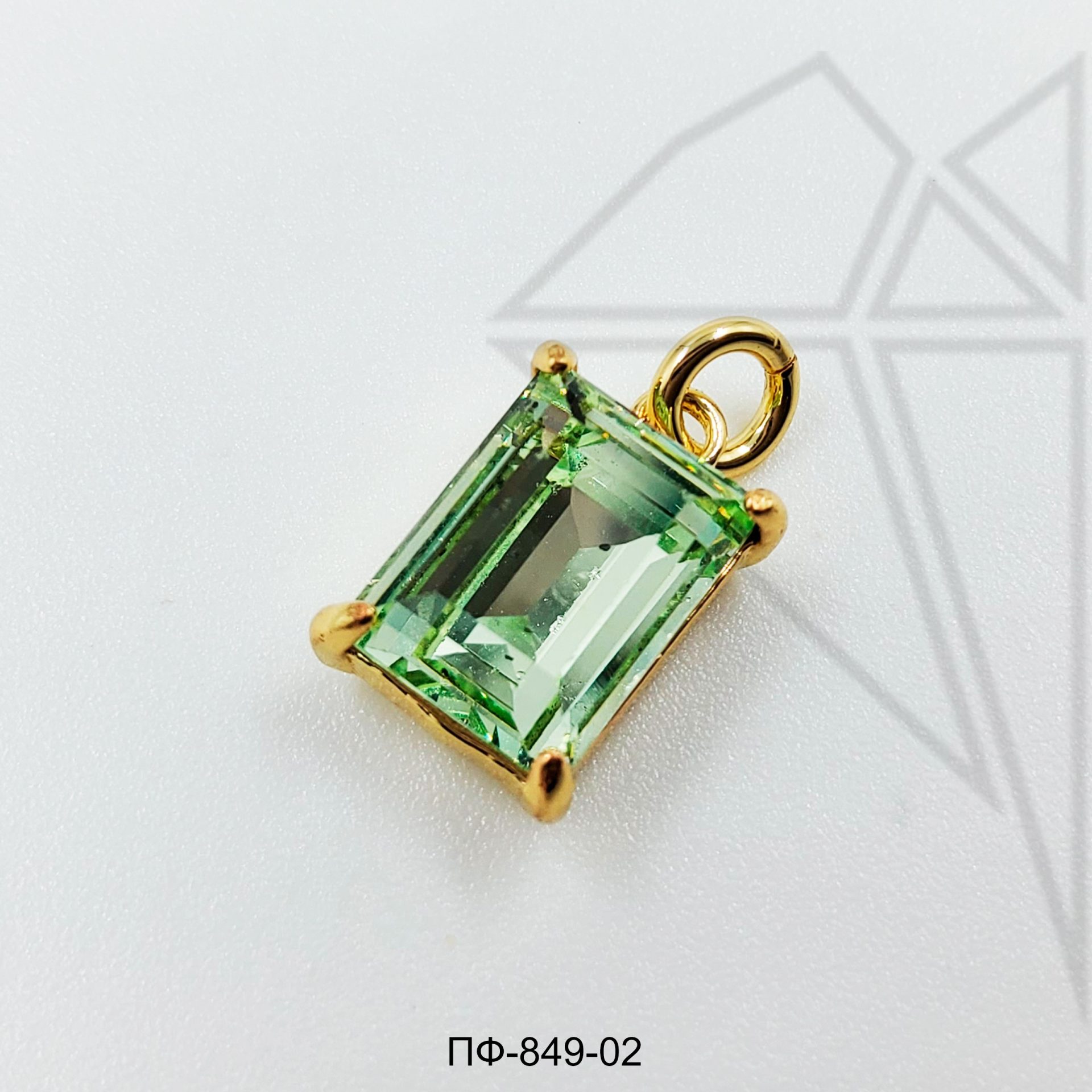 Подвеска прямоугольная с зеленым фианитом класса люкс с позолоченным покрытием (по латуни)