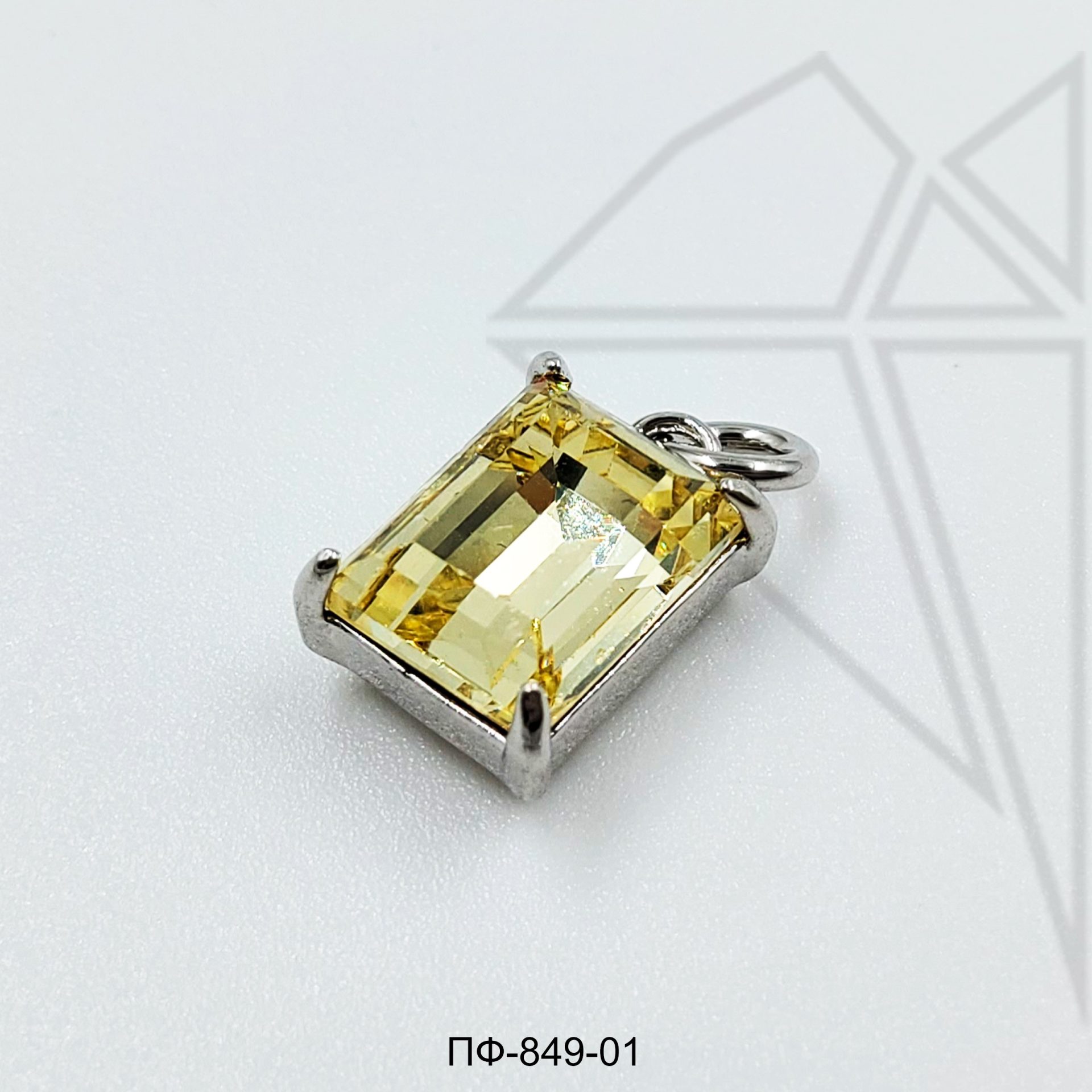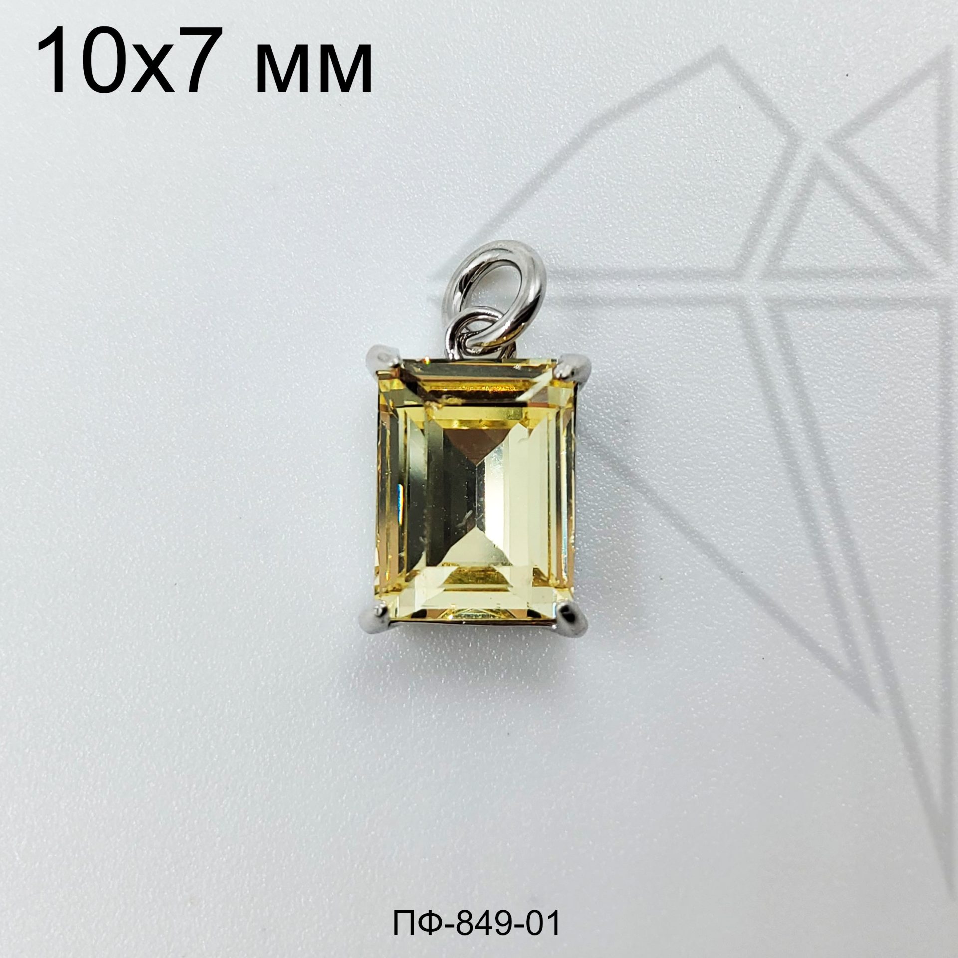 Подвеска прямоугольная с желтым фианитом класса люкс с родированным покрытием (по латуни)