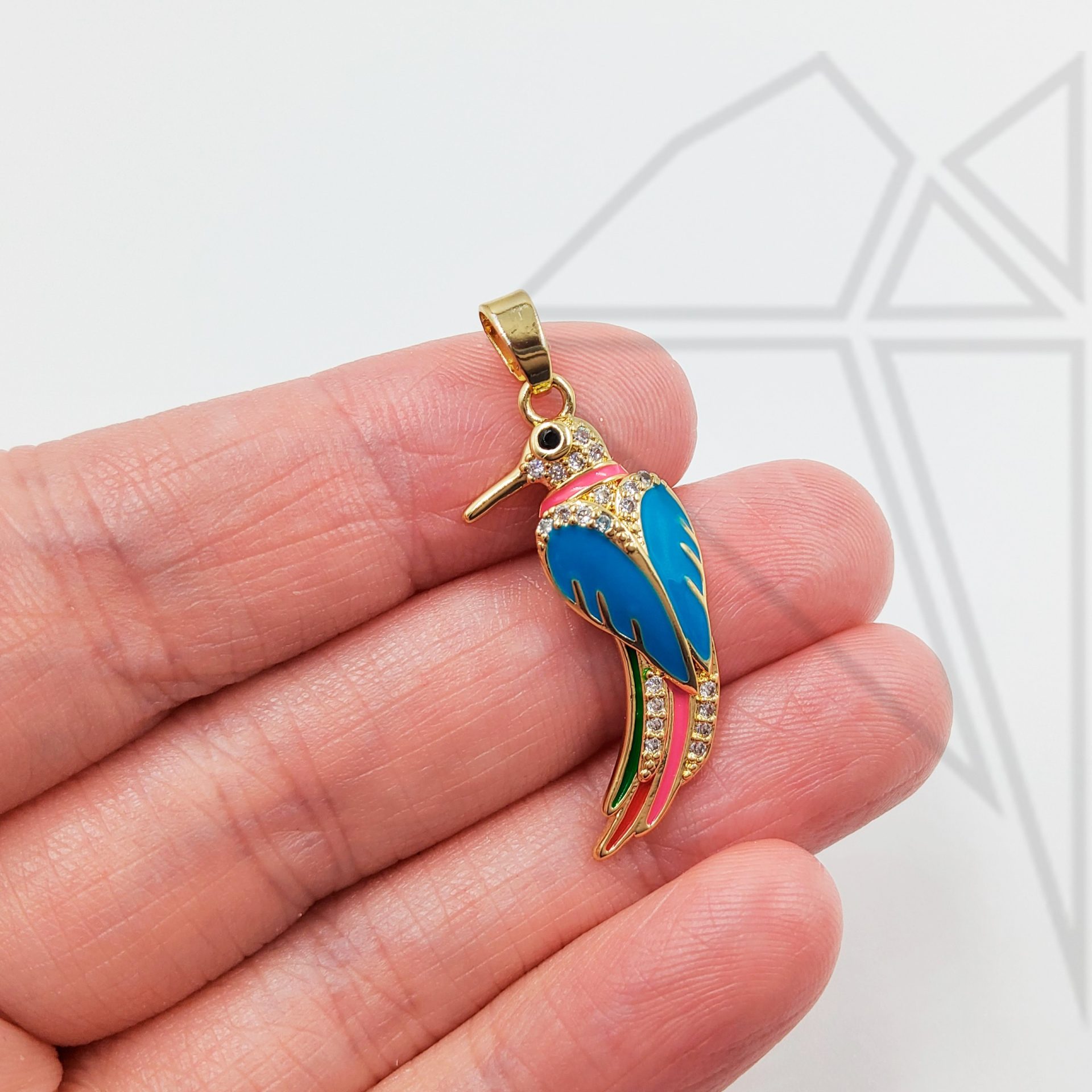 Подвеска покрыта цветной эмалью и инкрустирована фианитами