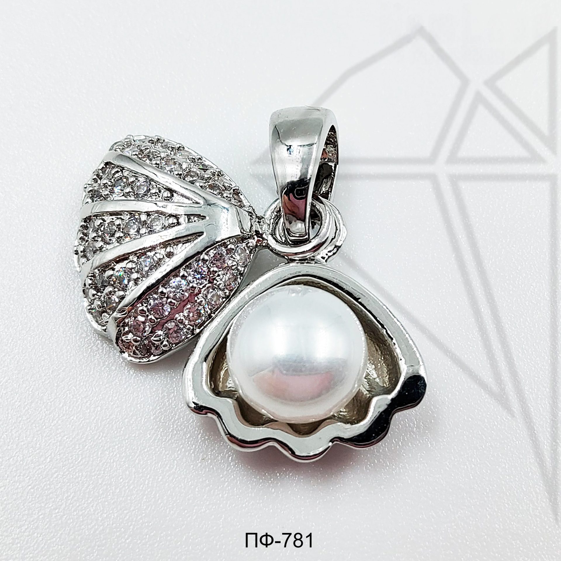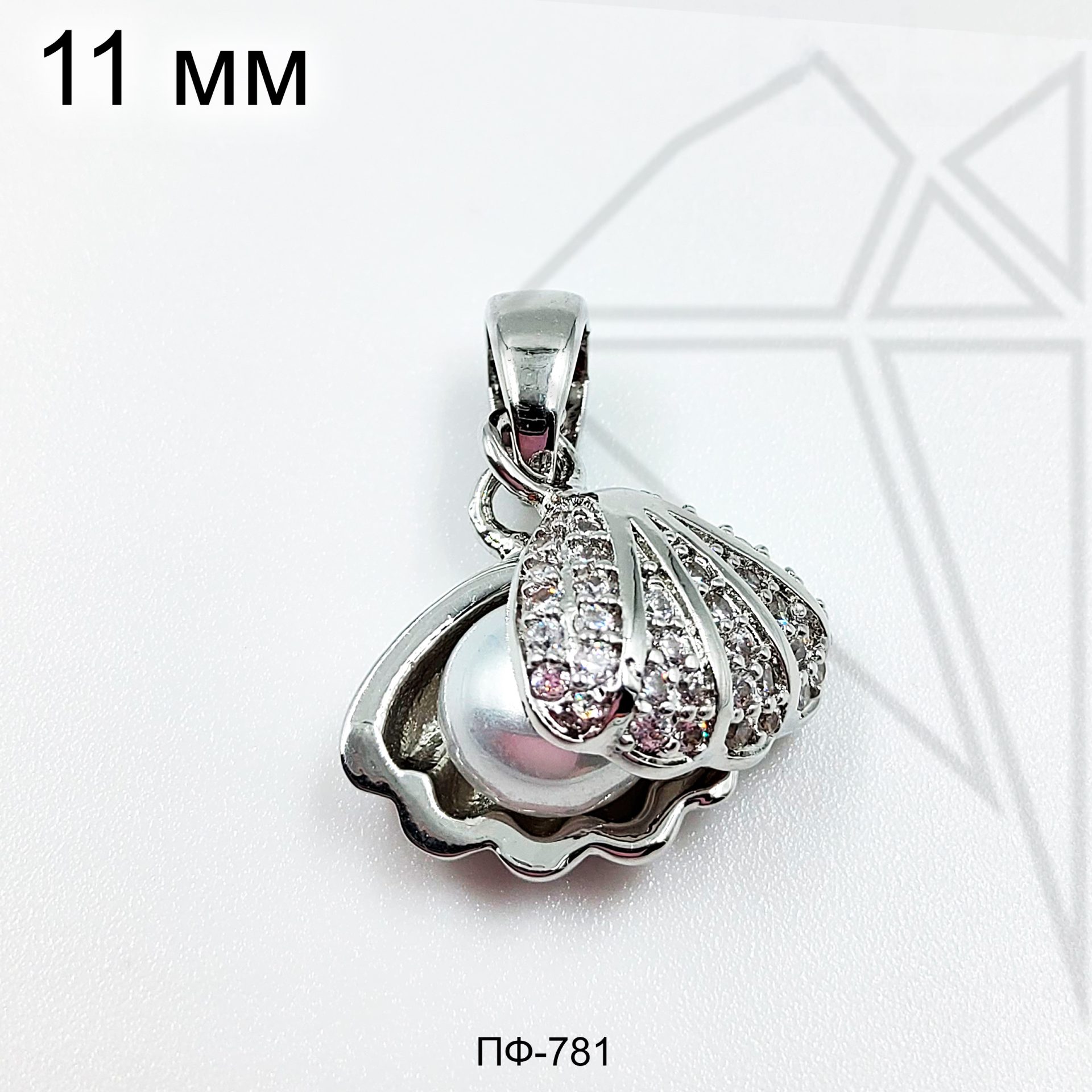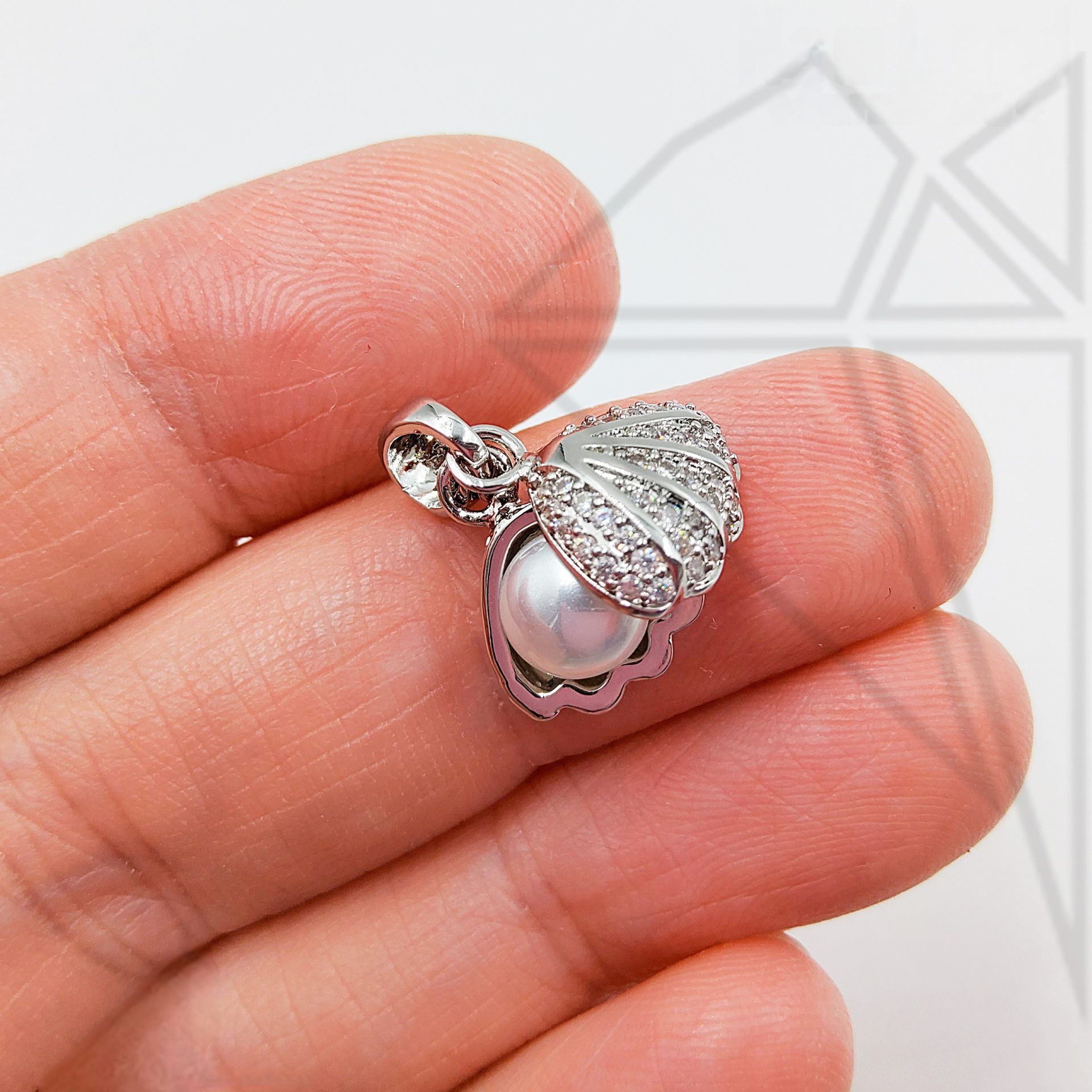 Подвеска Ракушка класса люкс с родированным покрытием (по латуни).