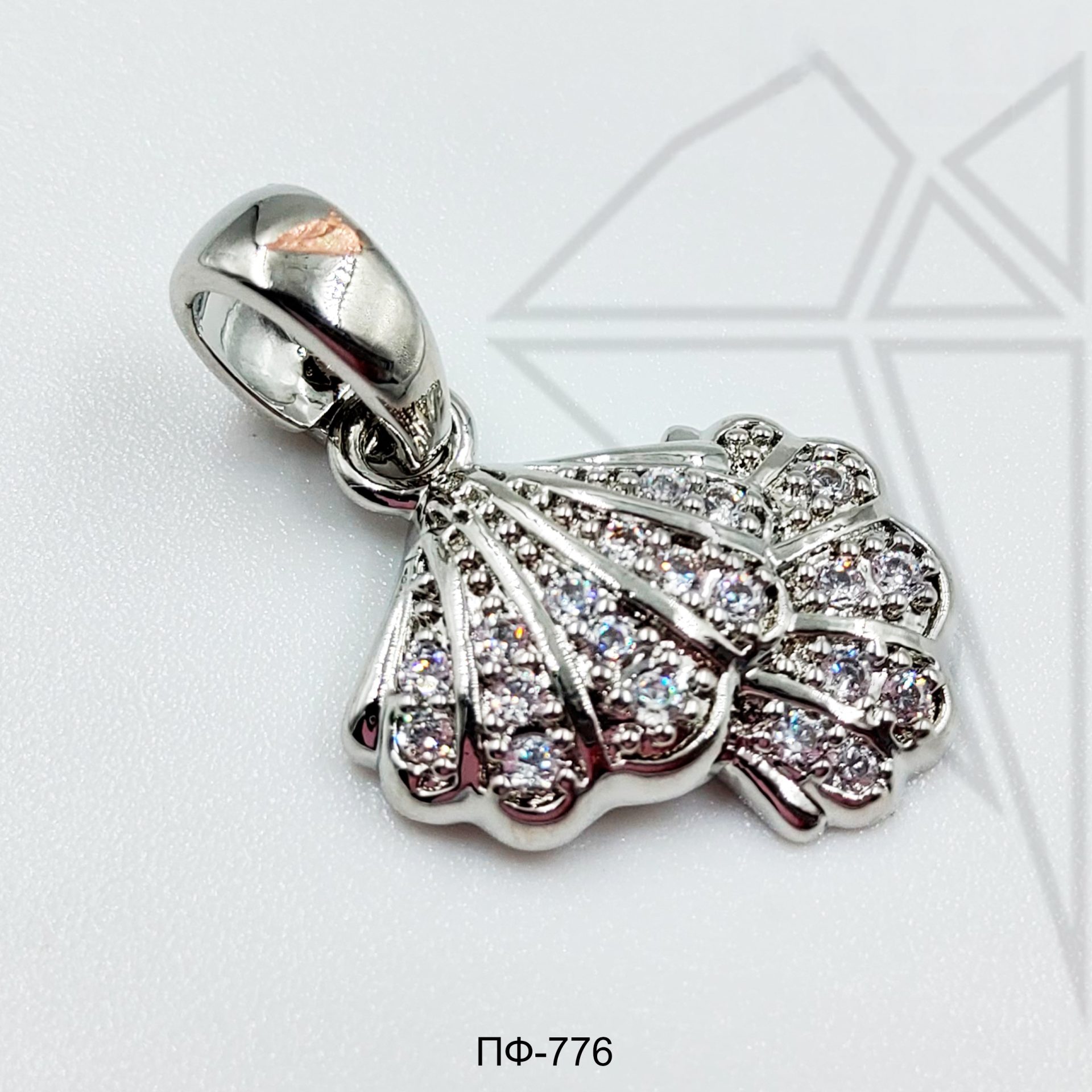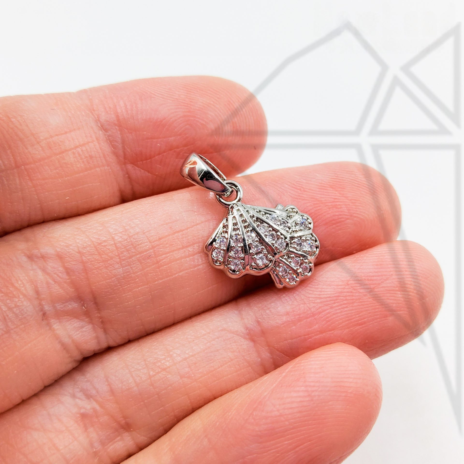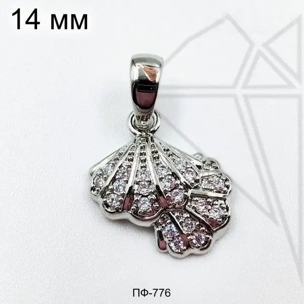 Подвеска ракушки с фианитами класса люкс с родированным покрытием (по латуни).