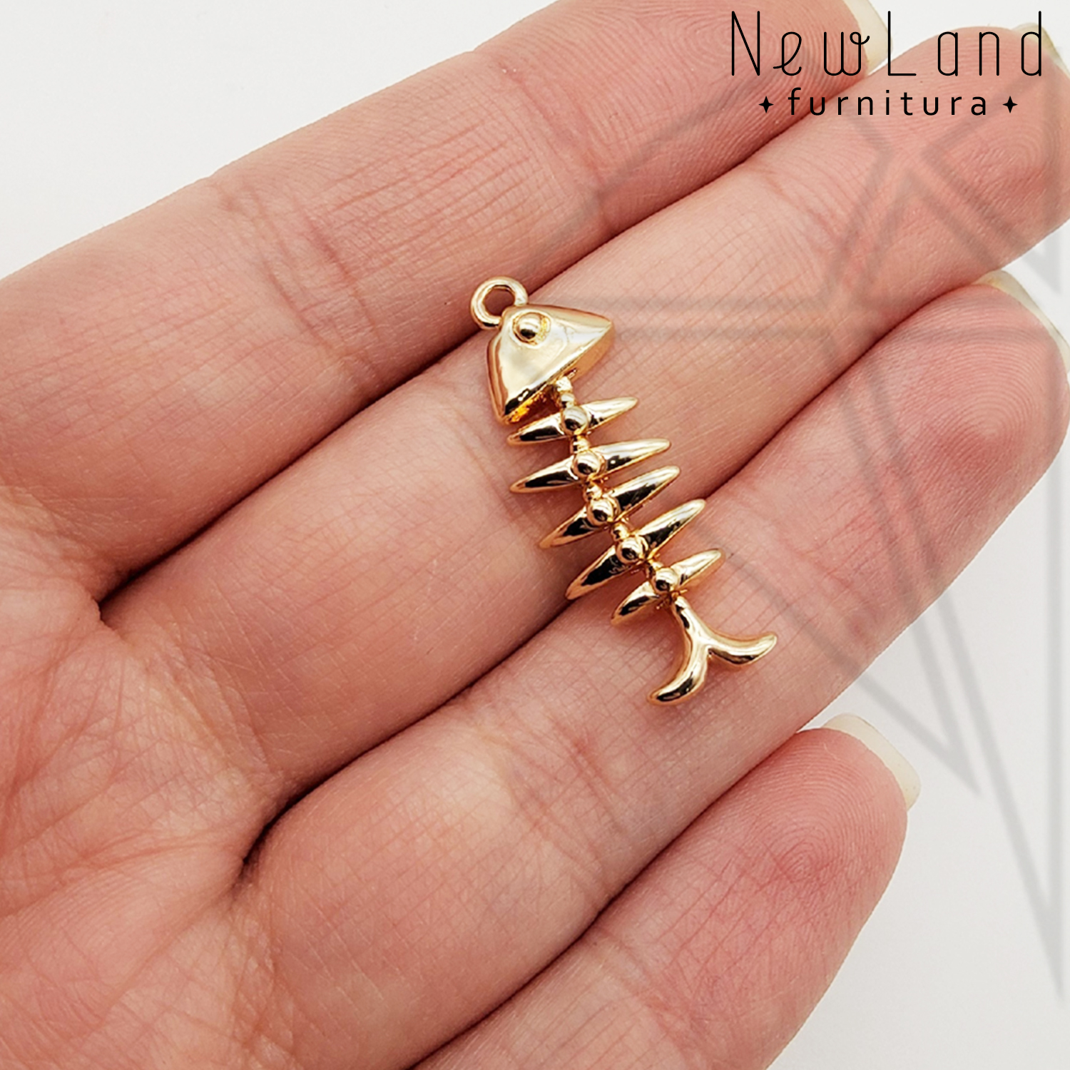Подвеска скелет рыбки класса люкс с позолоченным покрытием (по латуни).