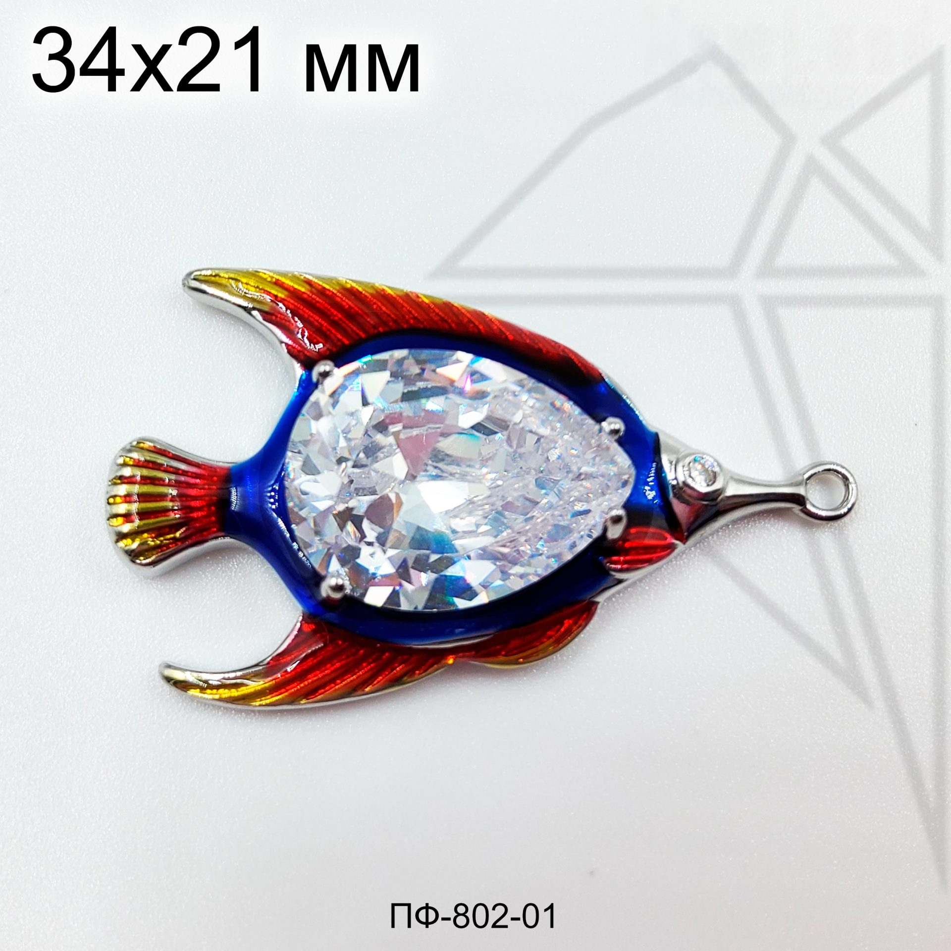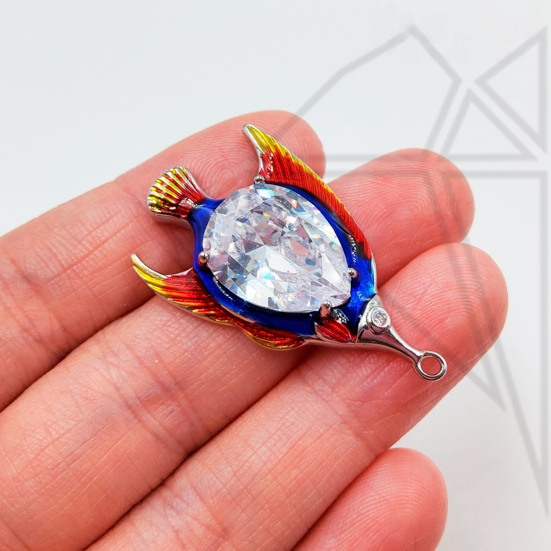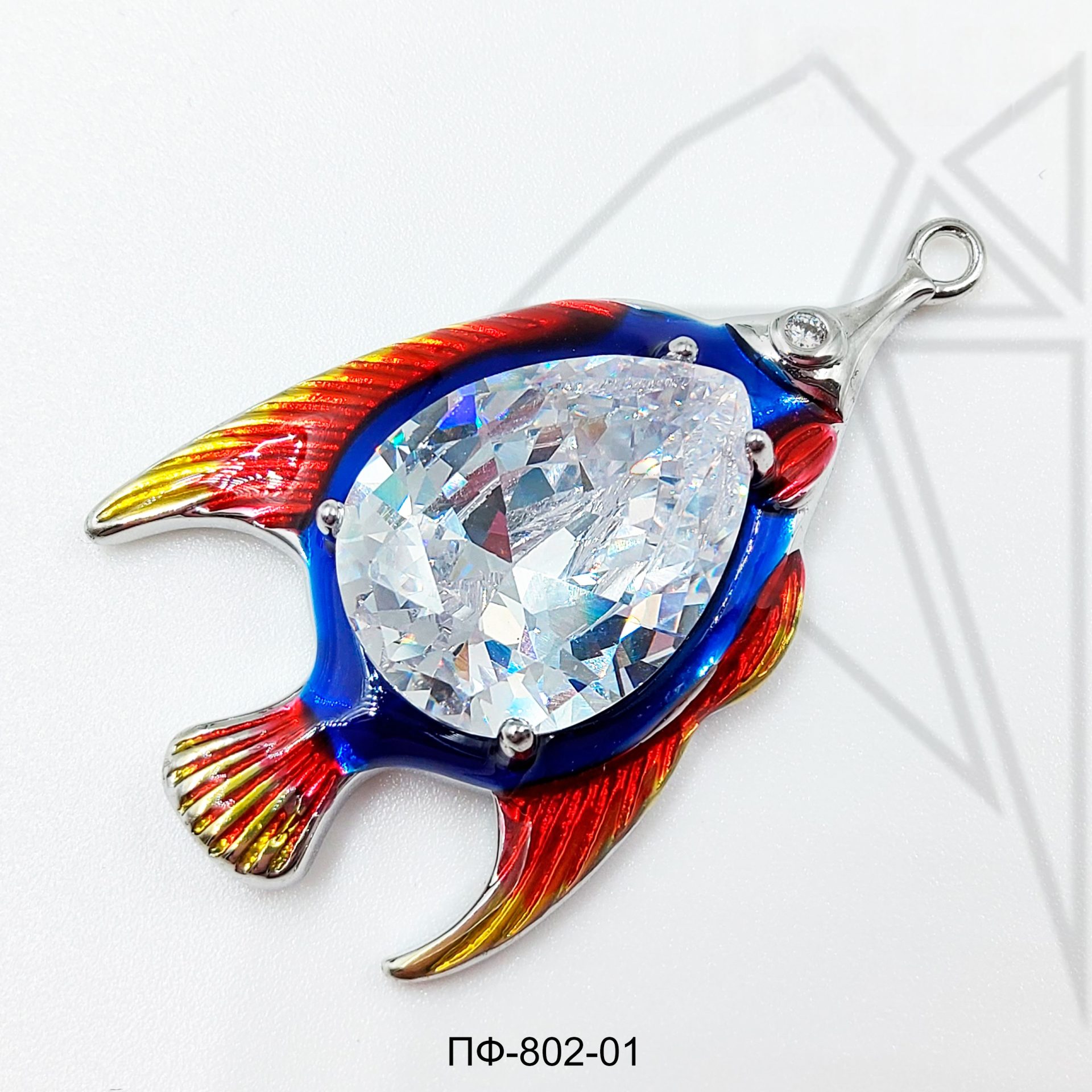 Подвеска покрыта цветной эмалью, а в середине инкрустирована крупным фианитом