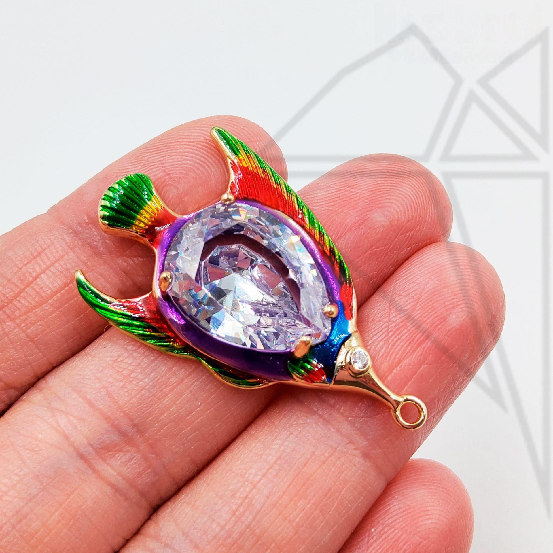 Подвеска покрыта цветной эмалью, а в середине инкрустирована крупным фианитом