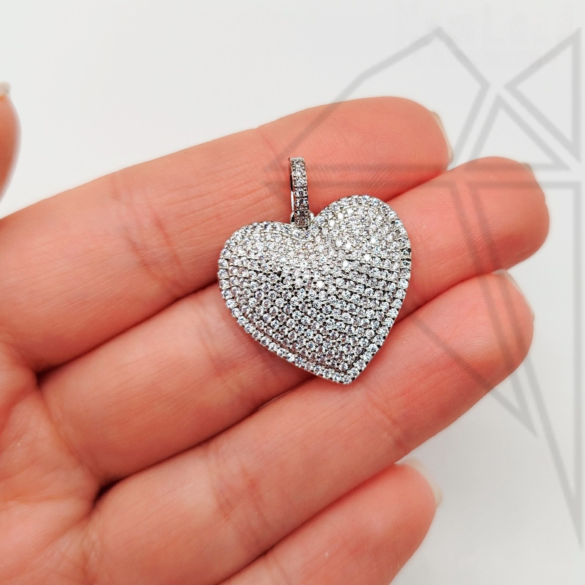 Подвеска сердце с бейлом и фианитами класса люкс с родированным покрытием (по латуни)