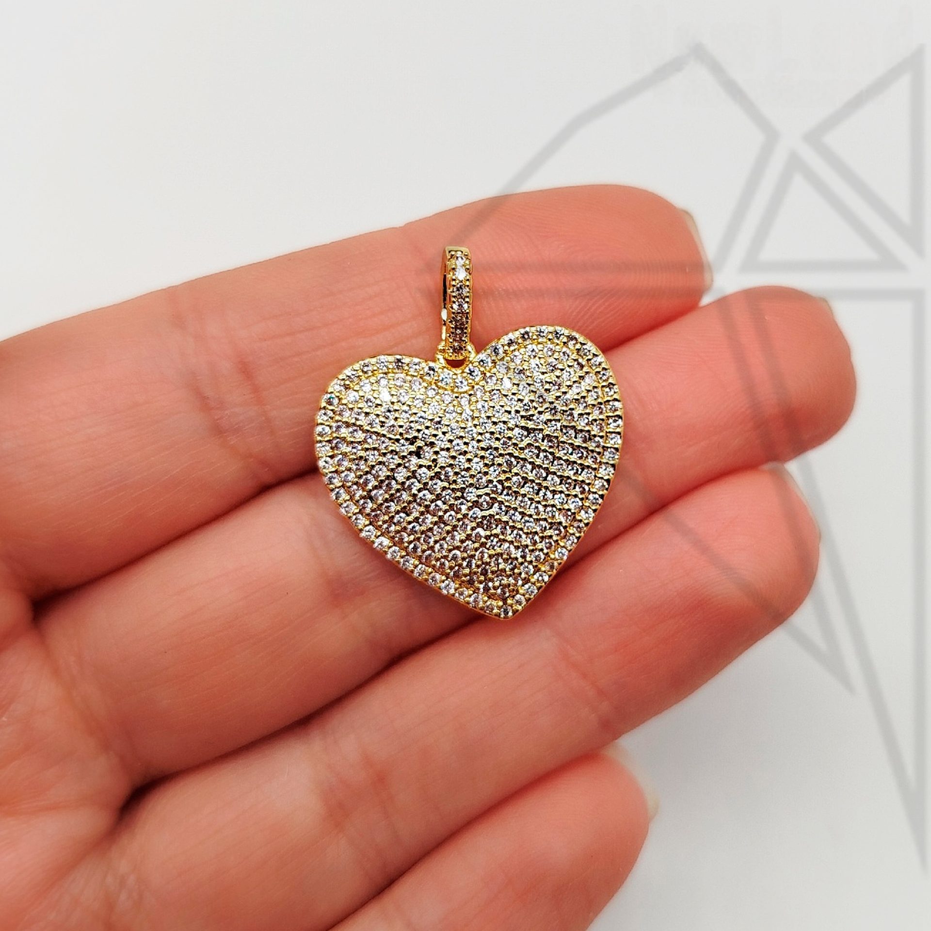 Подвеска сердце с бейлом и фианитами класса люкс с позолоченным покрытием (по латуни)