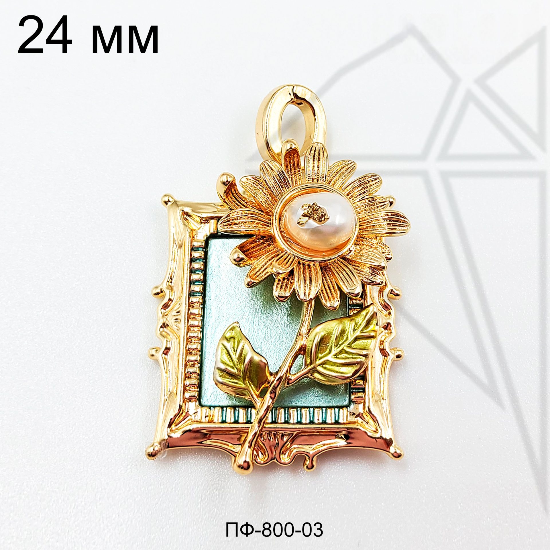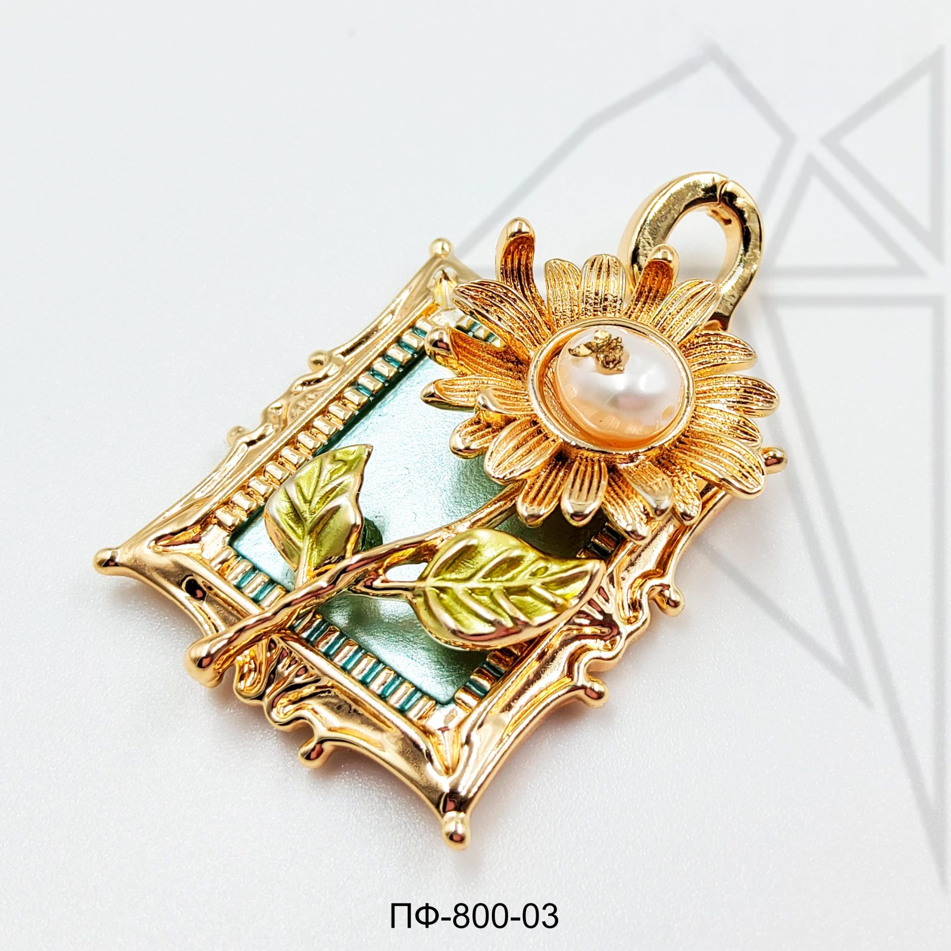 Подвеска покрыта цветной эмалью, в середину цветка вклеена натуральная жемчужина