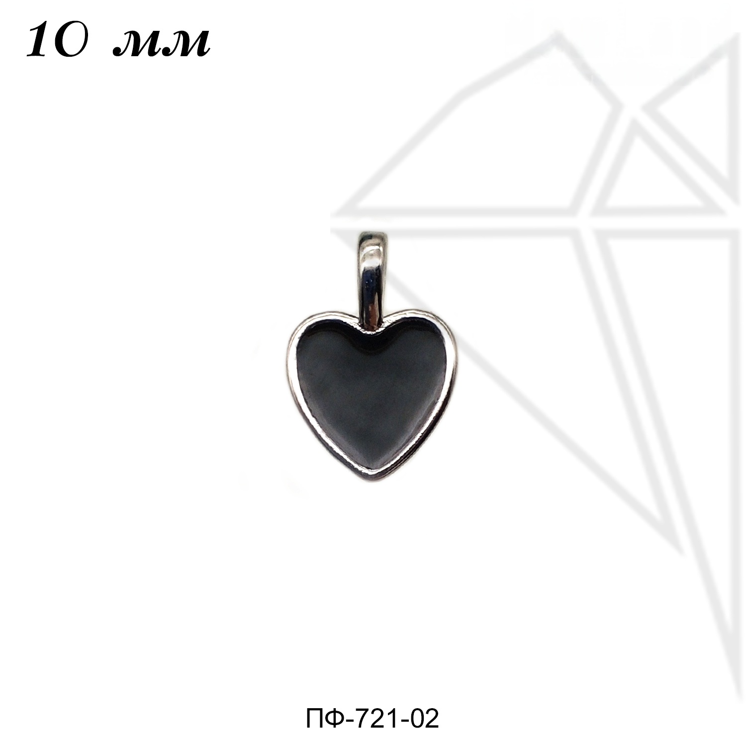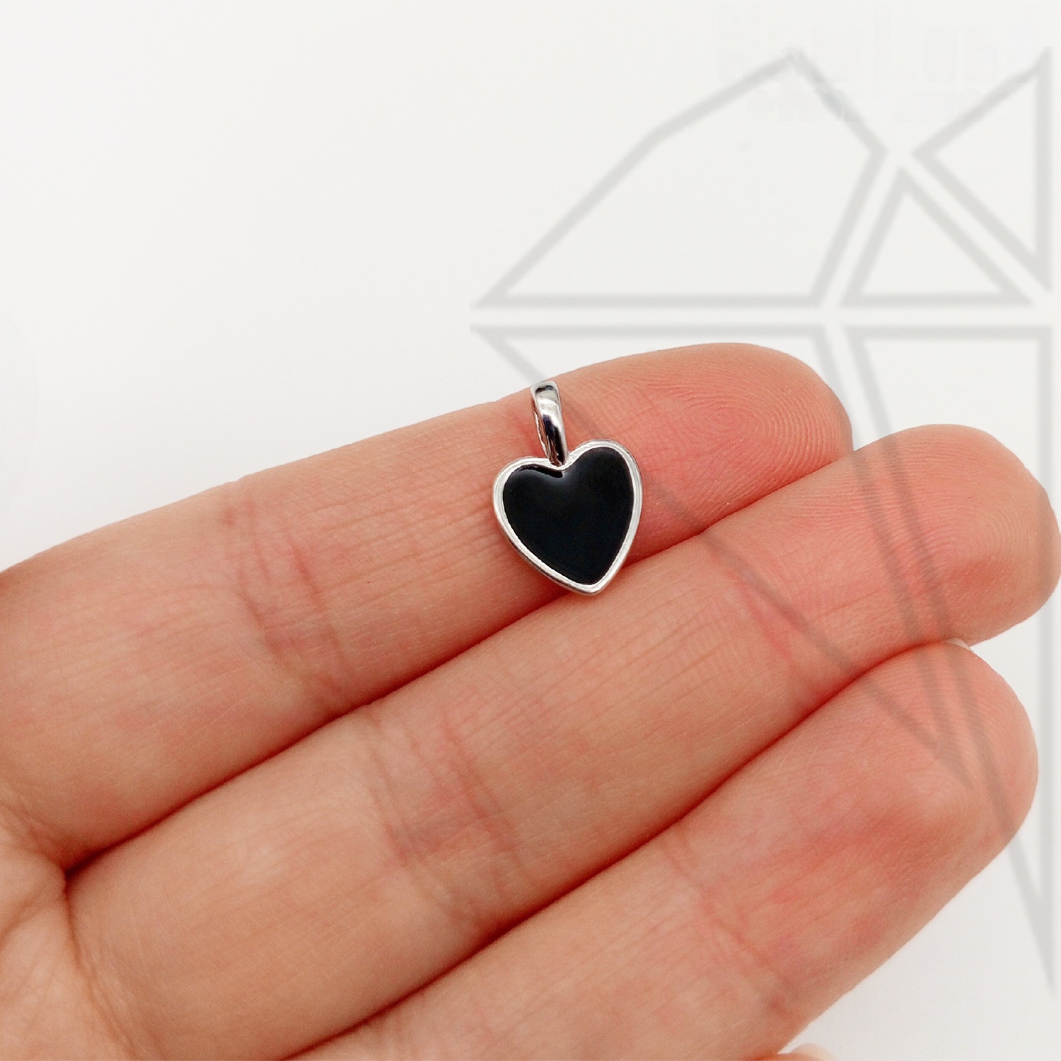 Подвеска сердце 10 мм с черной эмалью класса люкс с родированным покрытием (по латуни).