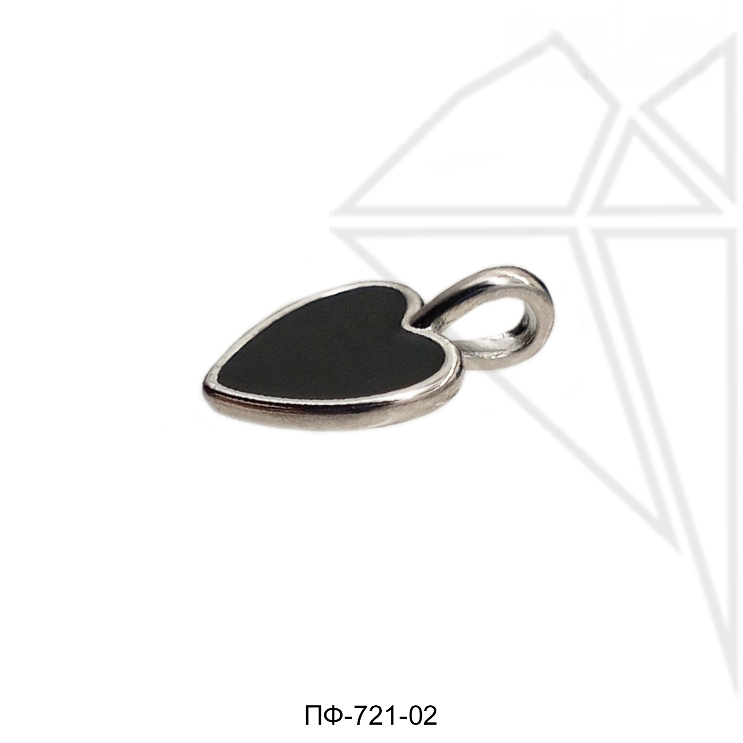 Подвеска сердце с черной эмалью класса люкс с родированным покрытием (по латуни).