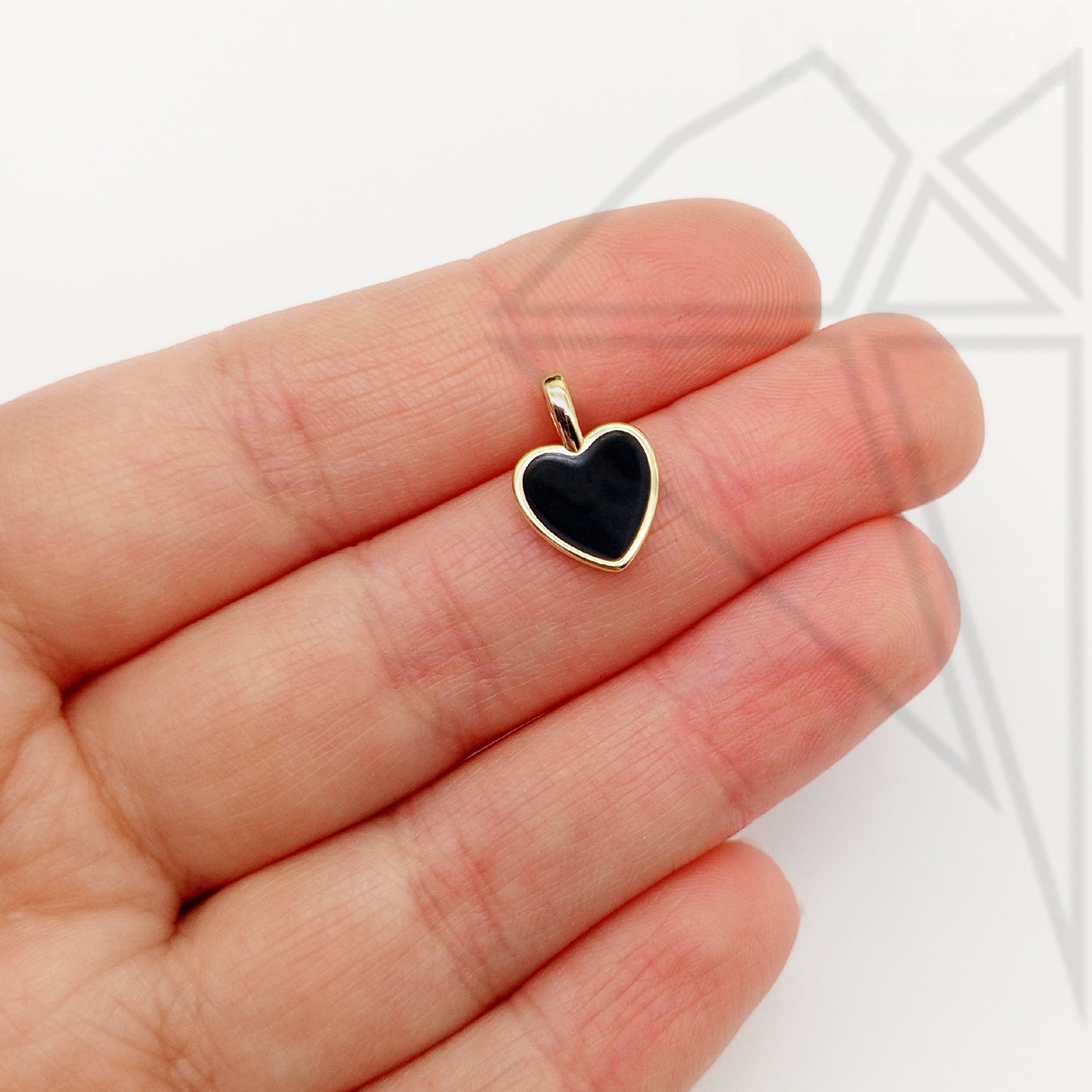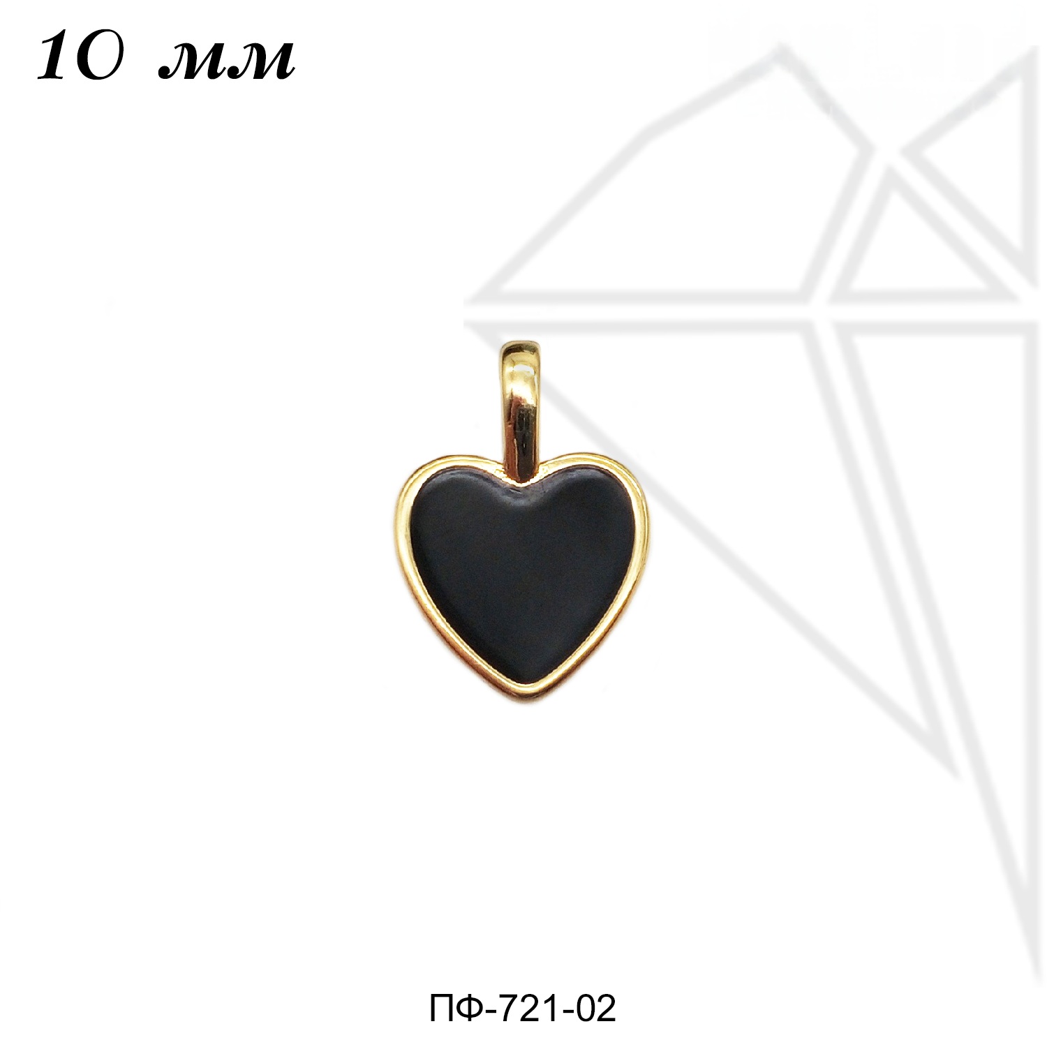 Подвеска сердце 10 мм с черной эмалью класса люкс с позолоченным покрытием (по латуни).
