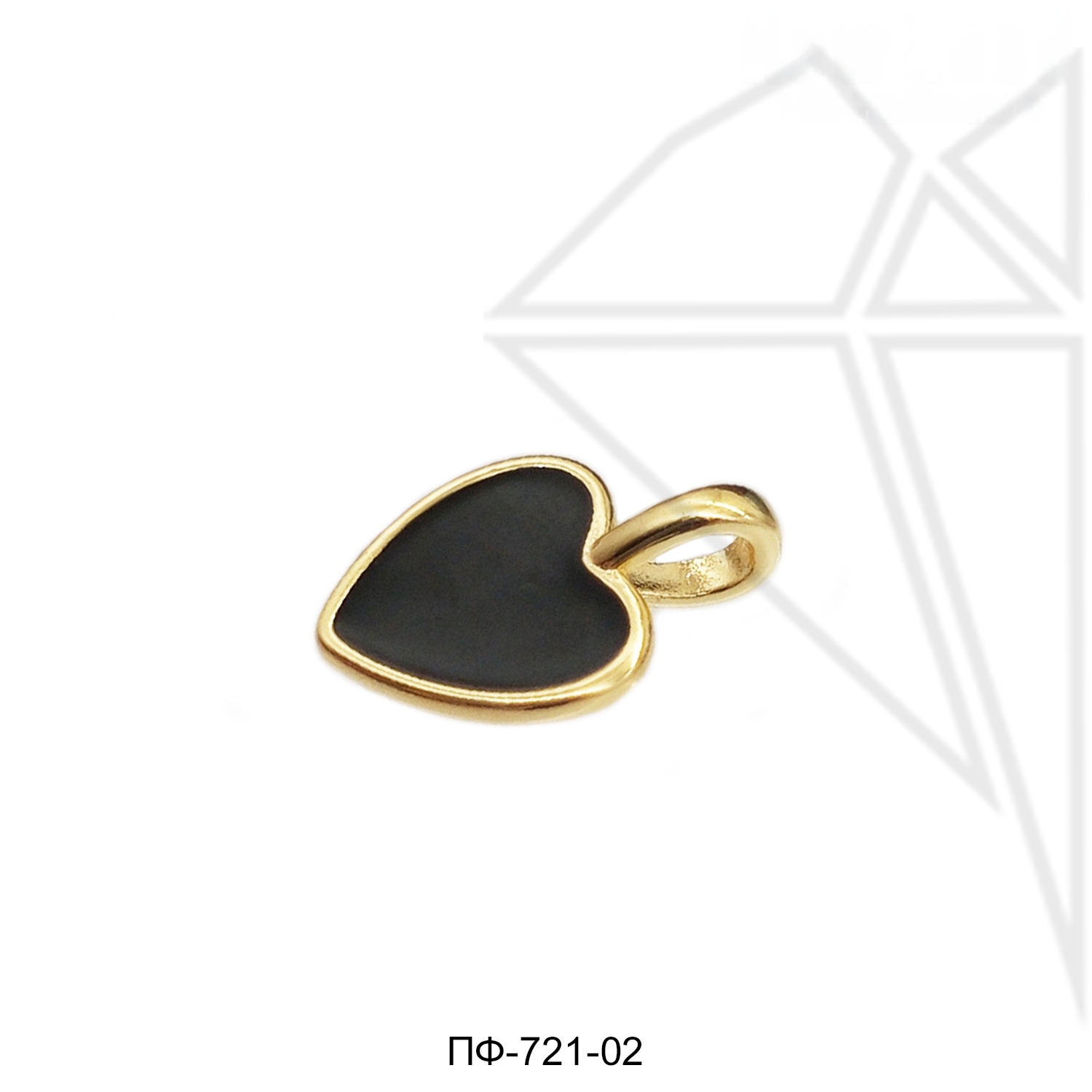 Подвеска сердце с черной эмалью класса люкс с позолоченным покрытием (по латуни).