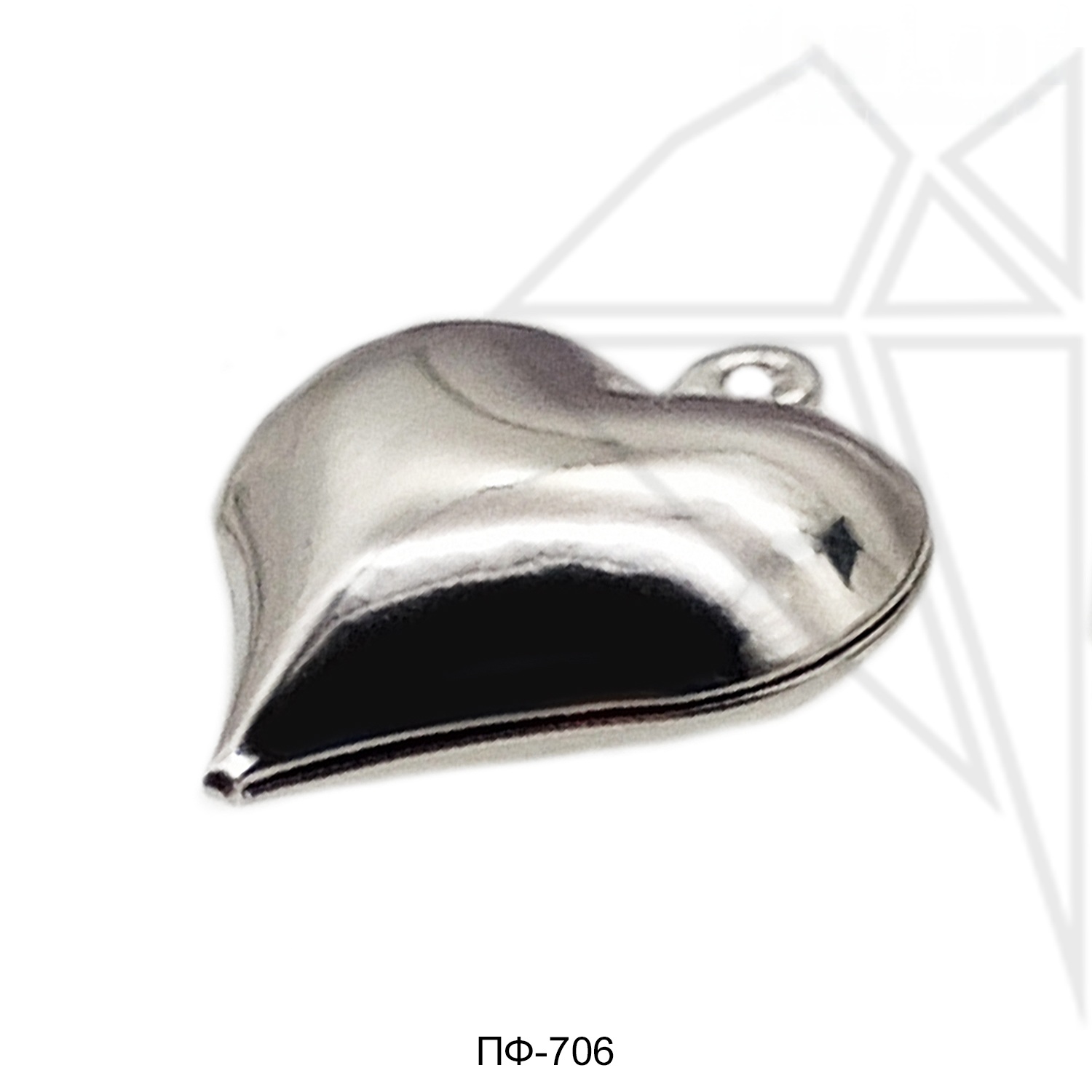 Подвеска в форме сердца класса люкс с родированным покрытием (по латуни).