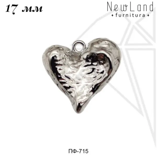 Подвеска в форме сердца 17 мм с фактурой класса люкс с родированным покрытием (по латуни).