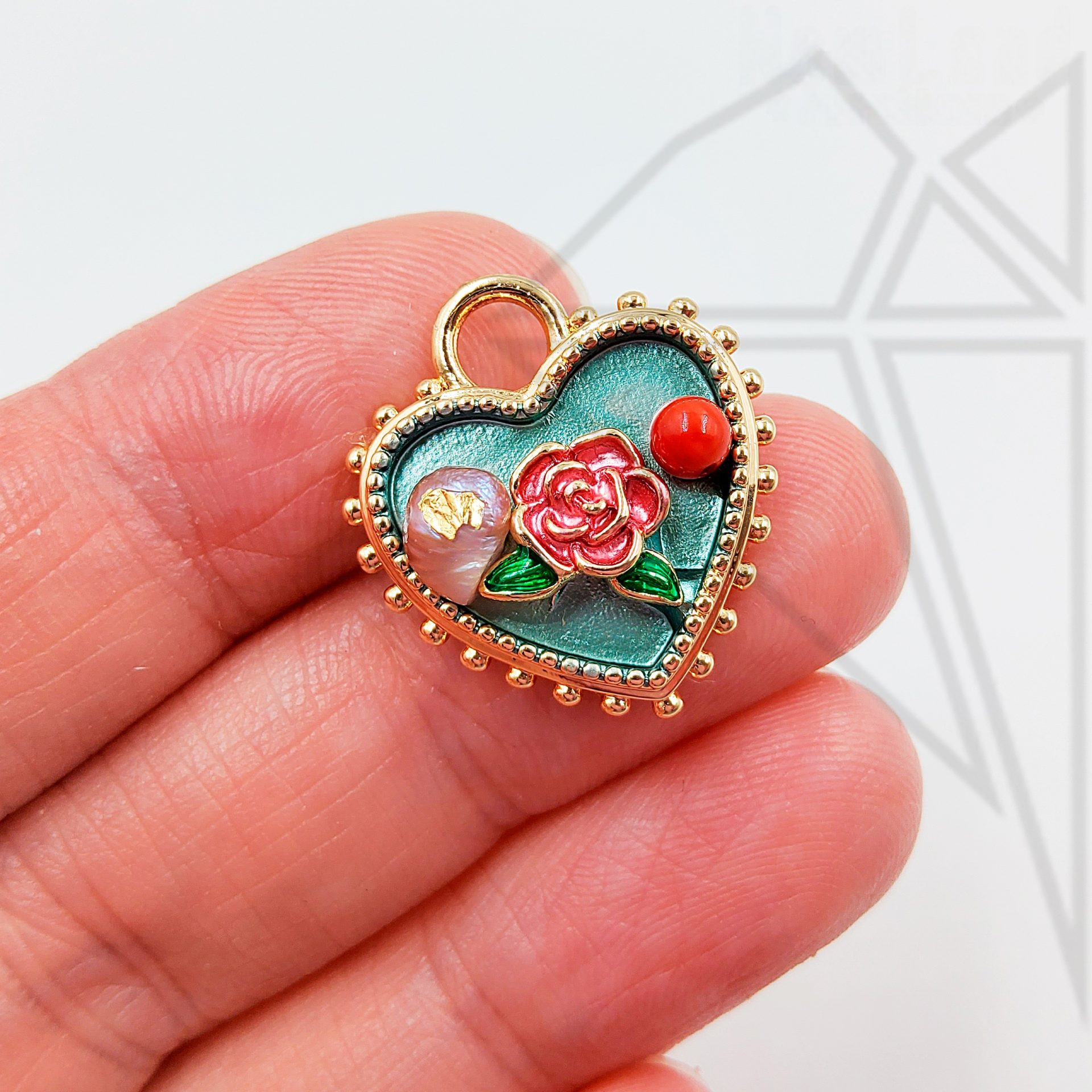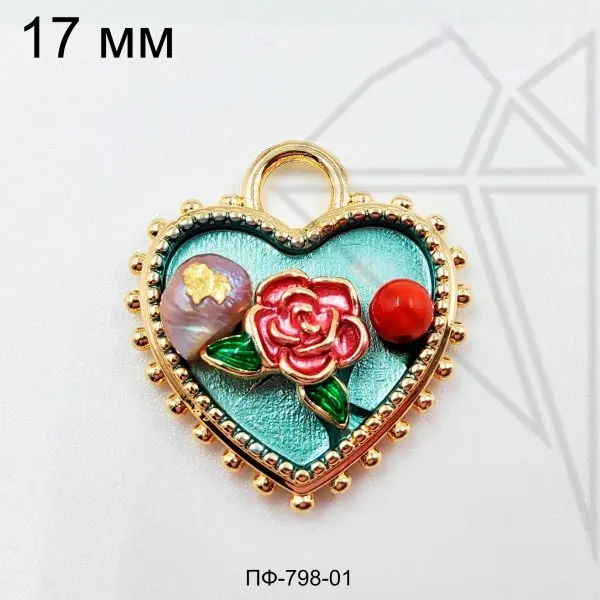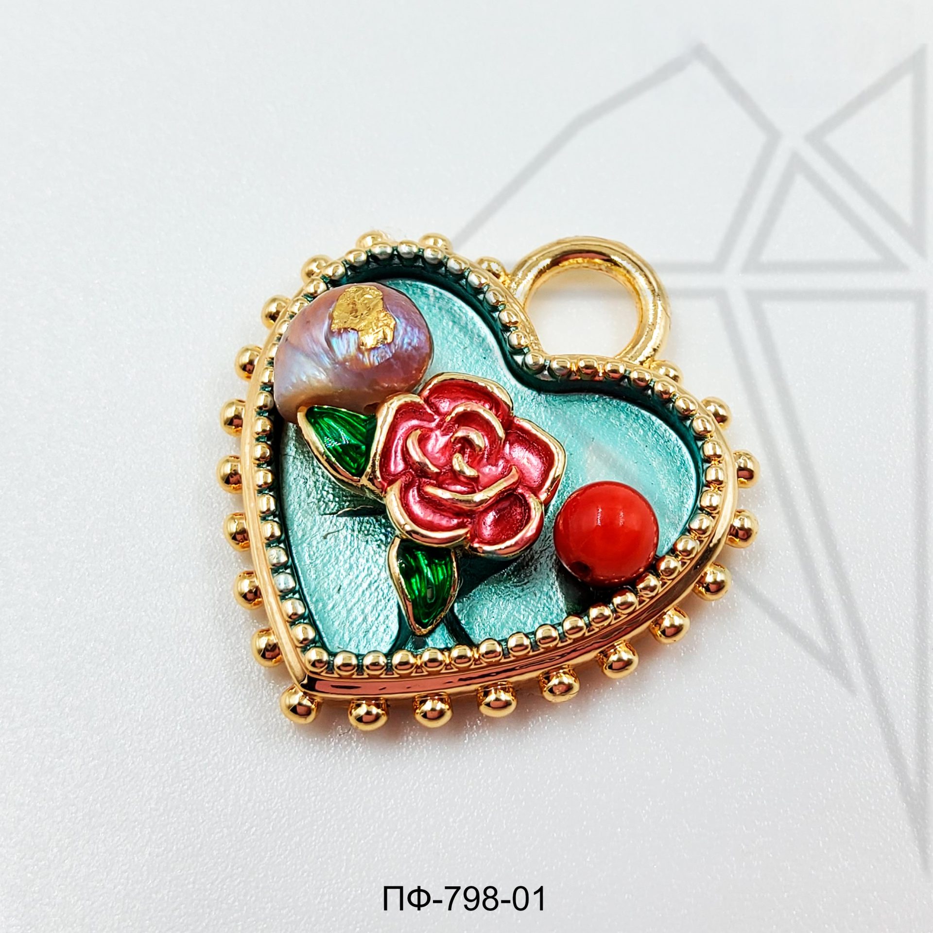 Подвеска покрыта цветной эмалью, жемчугом и натуральным камнем
