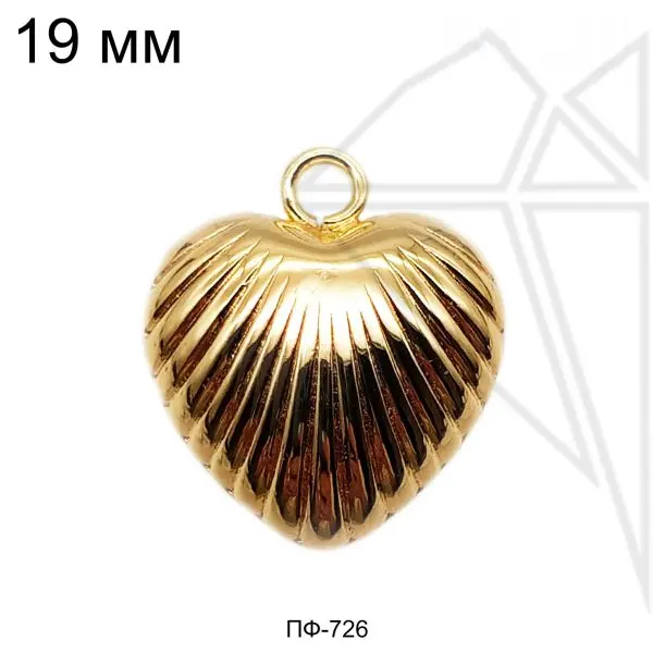 Подвеска в форме сердца-ракушки 19 мм класса люкс с позолоченным покрытием (по латуни).