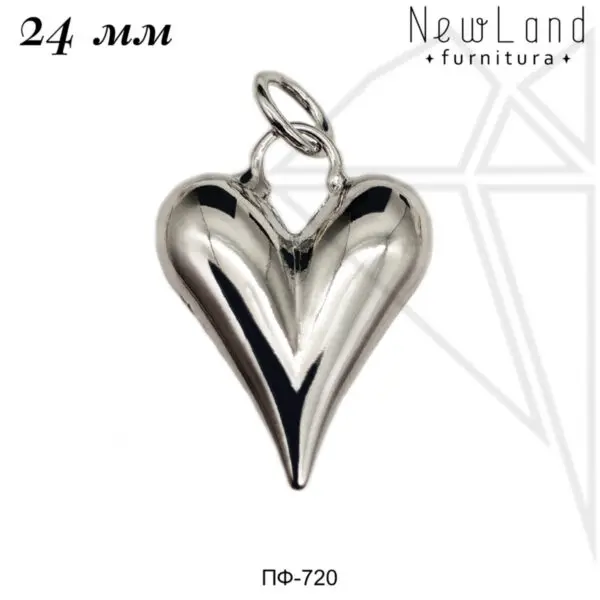 Подвеска в форме сердца 24 мм класса люкс с родированным покрытием (по латуни).