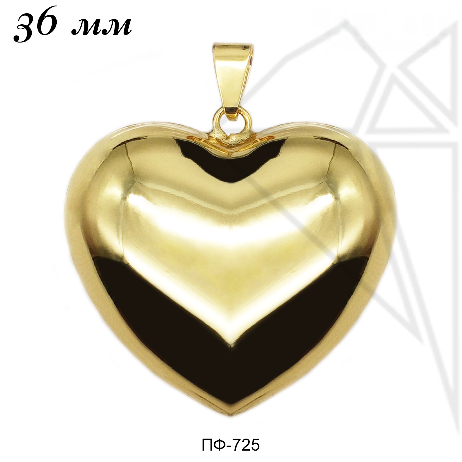 Подвеска в форме сердца 36 мм класса люкс с позолоченным покрытием (по латуни).