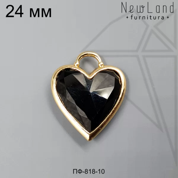 Подвеска в форме сердца с вставкой из агата черного 24 мм класса люкс с позолоченным покрытием (по латуни)