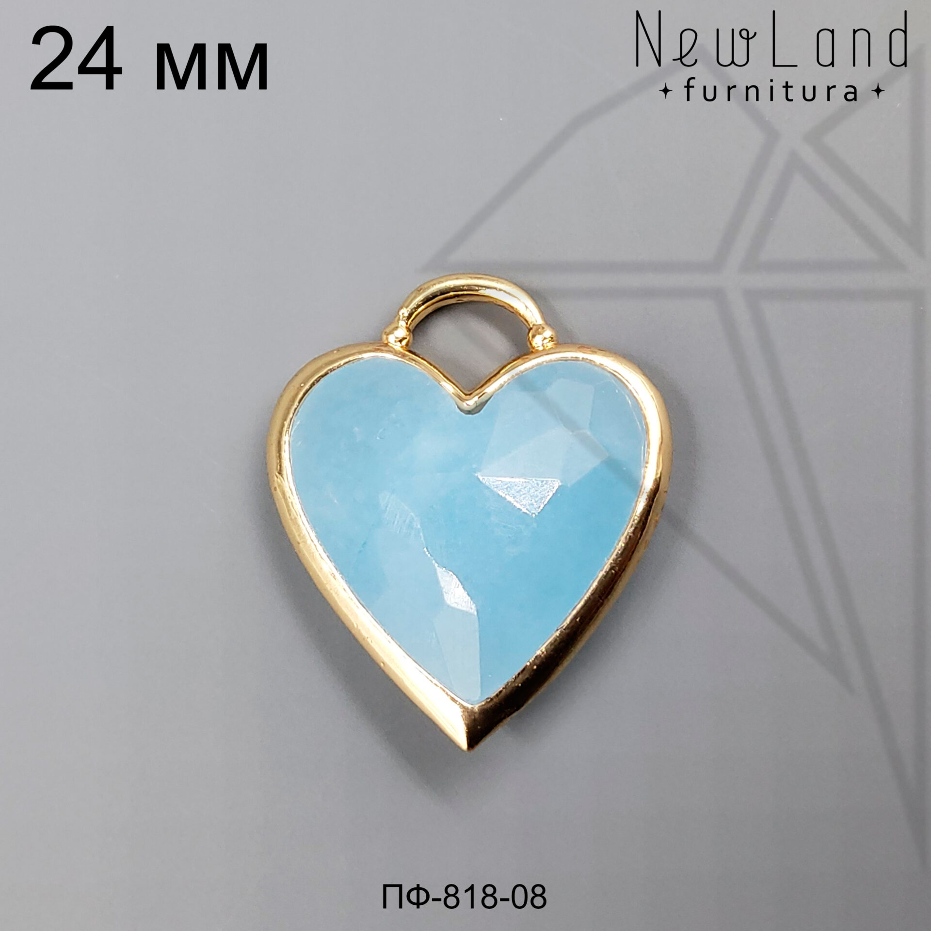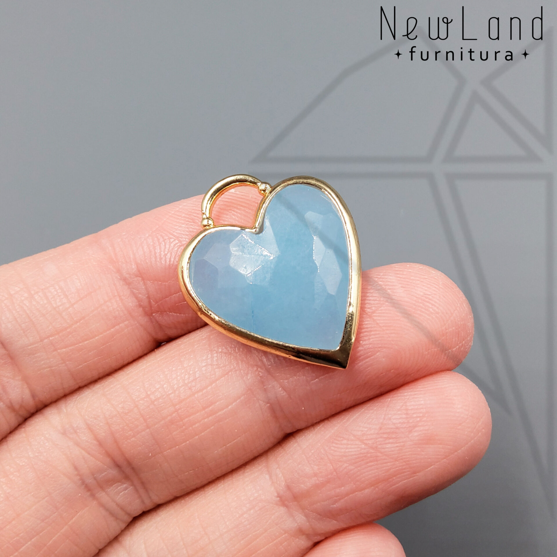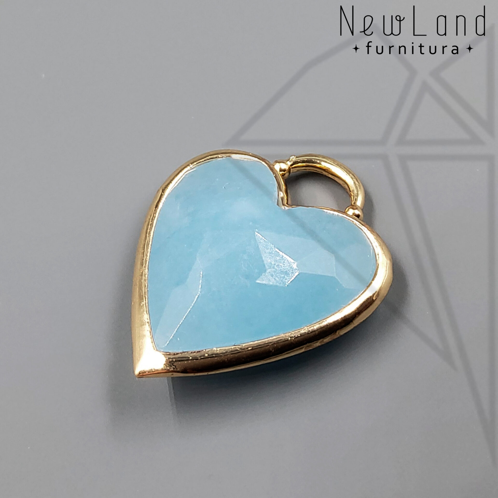 Подвеска в форме сердца с вставкой из агата голубого 24 мм класса люкс с позолоченным покрытием (по латуни)