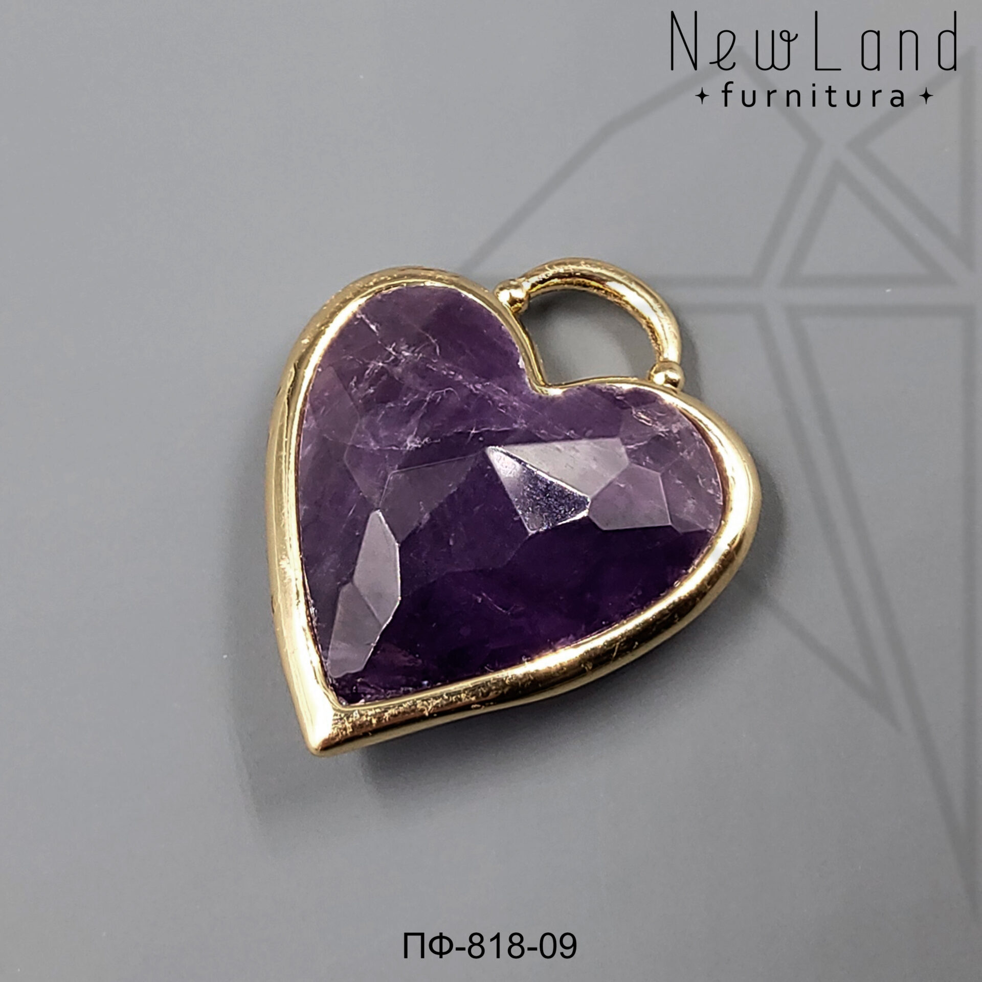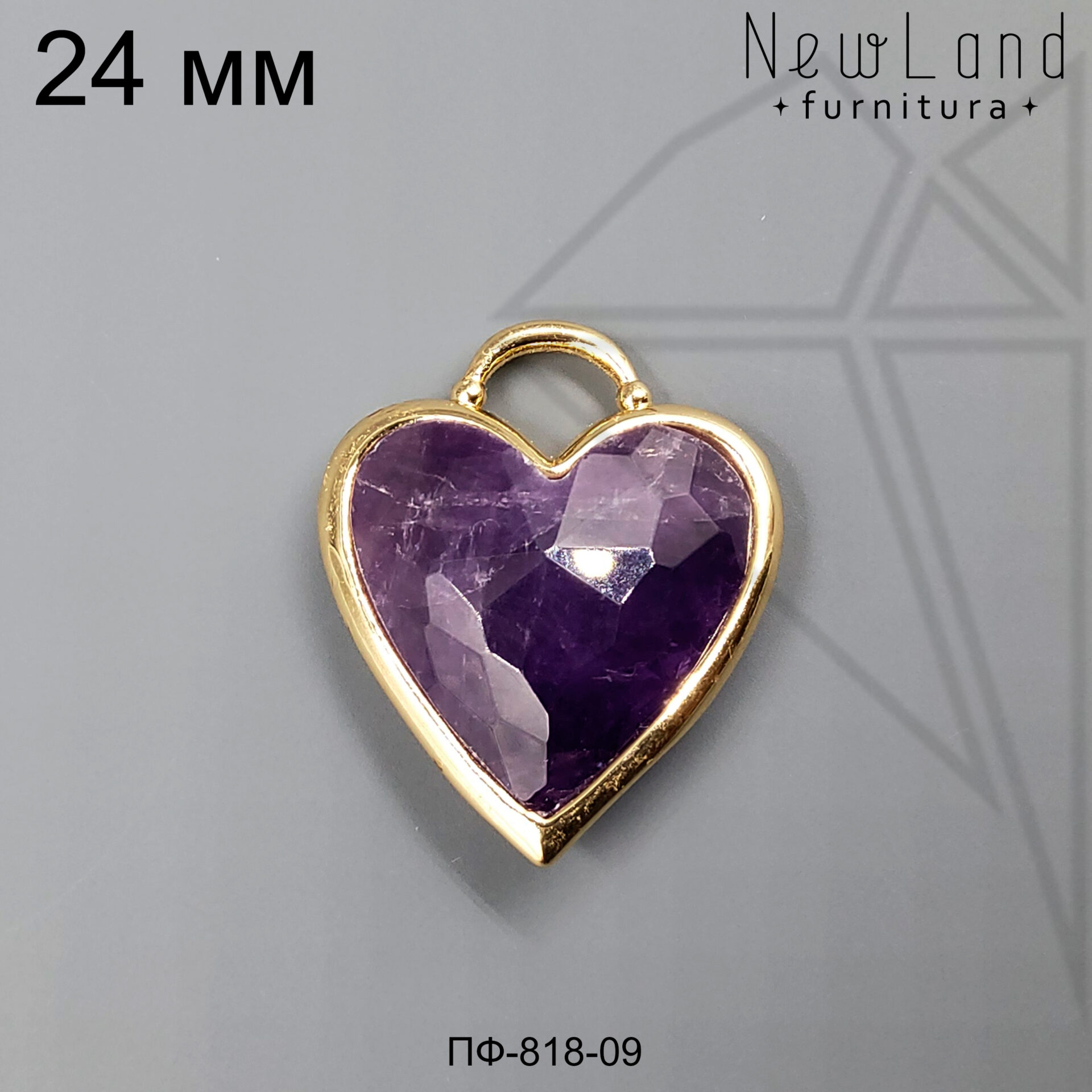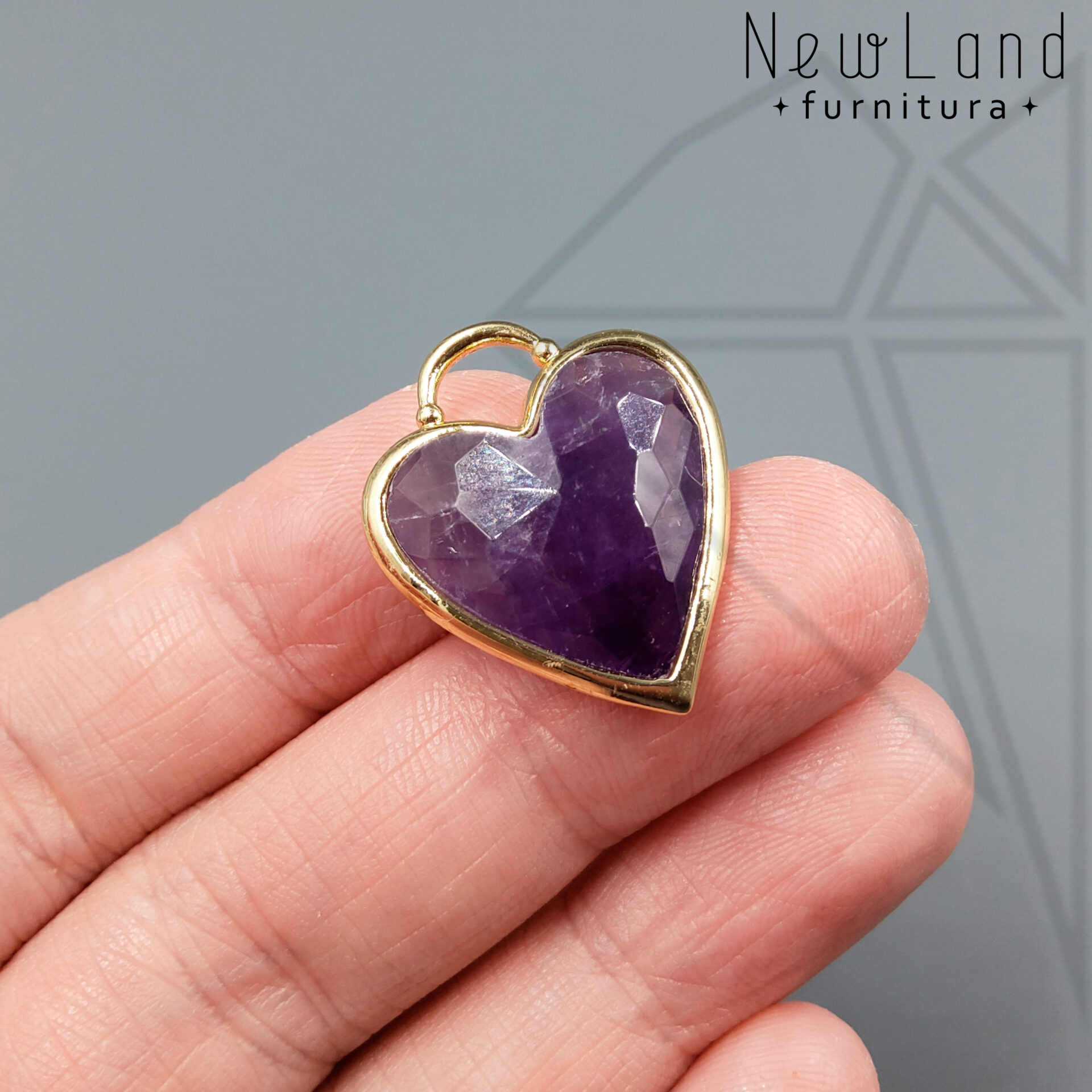 Подвеска в форме сердца с вставкой из аметиста 24 мм класса люкс с позолоченным покрытием (по латуни)