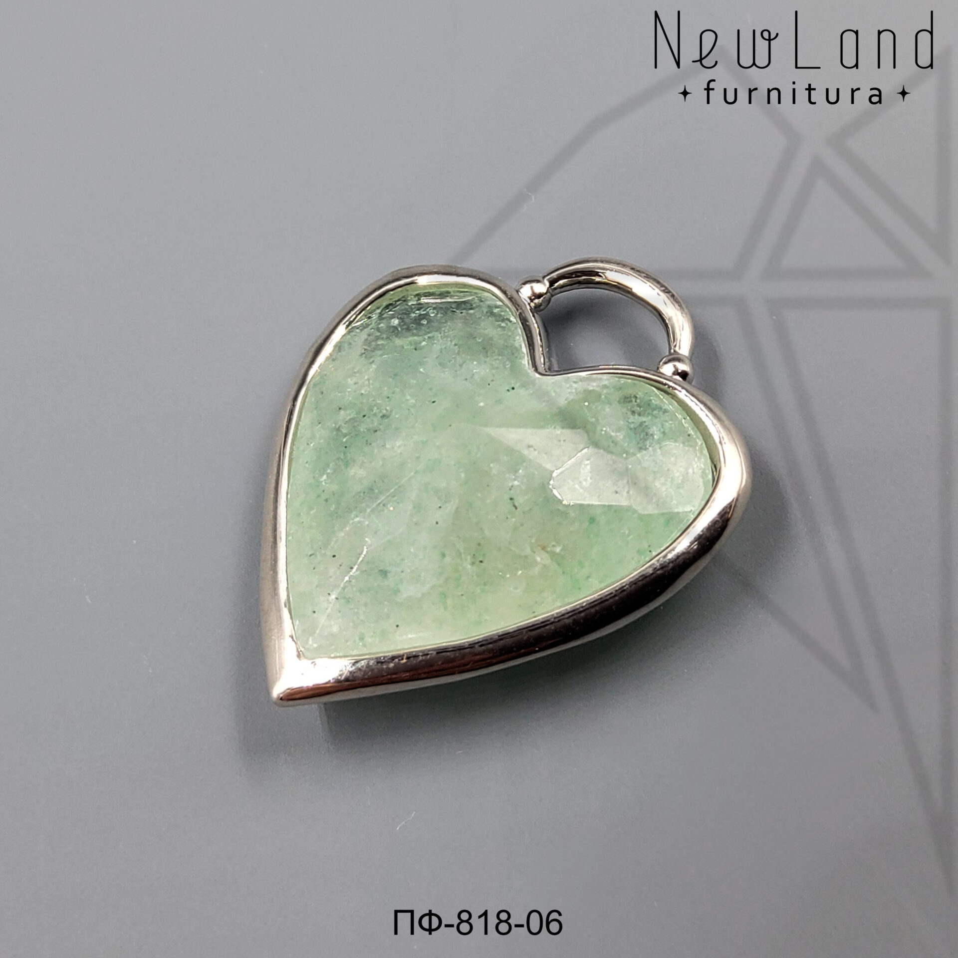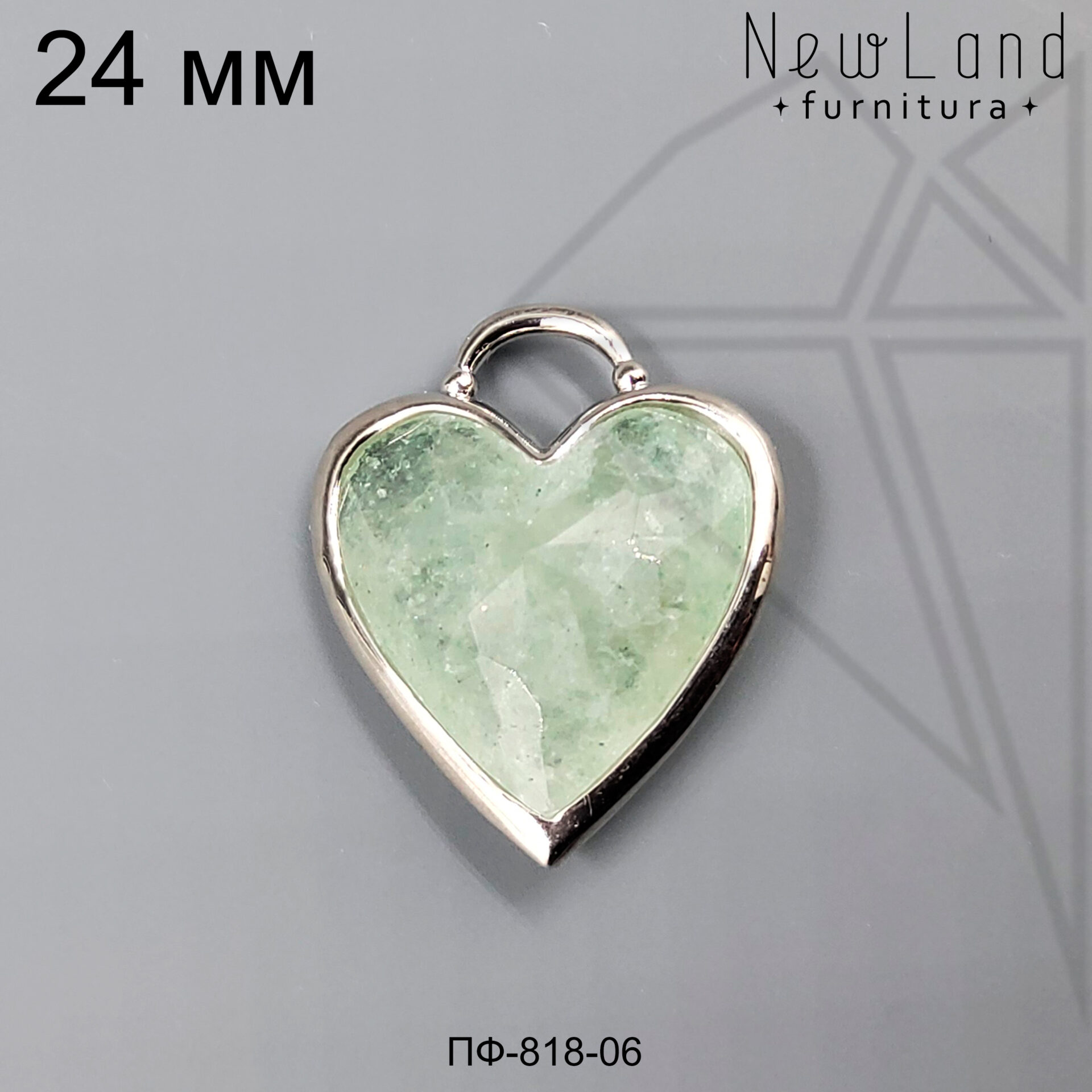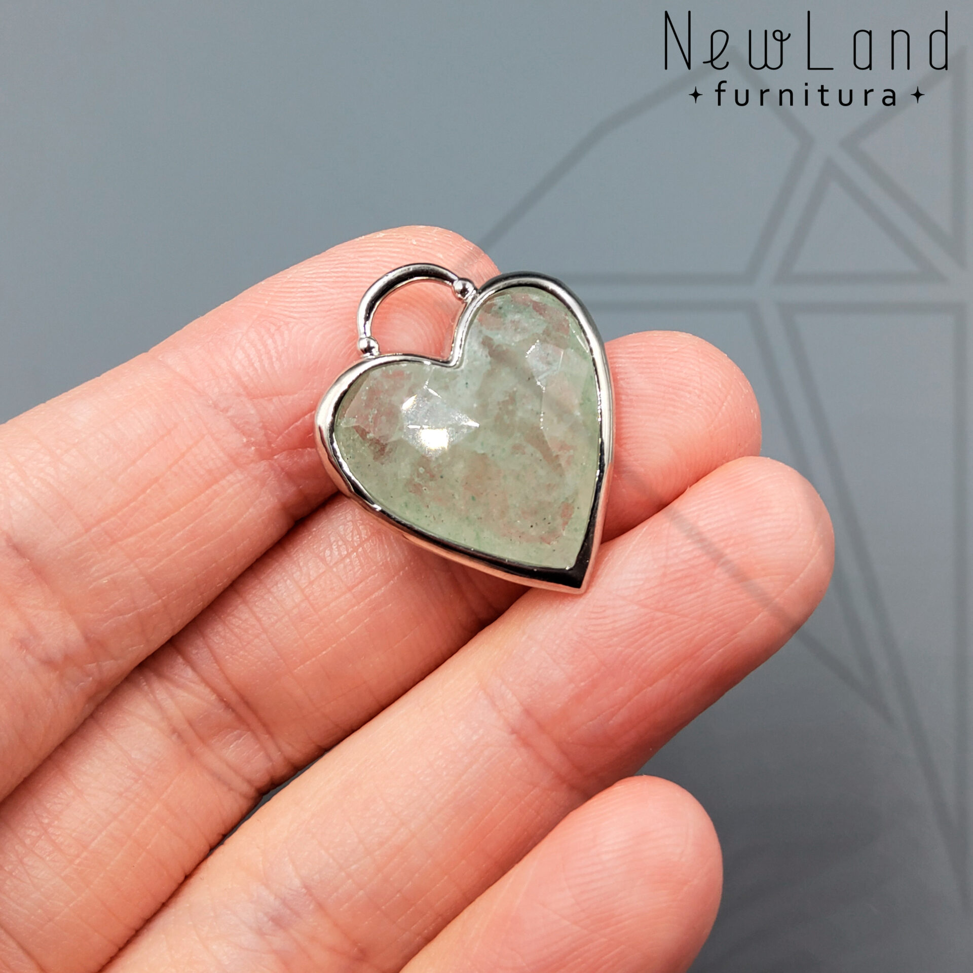 Подвеска в форме сердца с вставкой из авантюрина 24 мм класса люкс с родированным покрытием (по латуни)