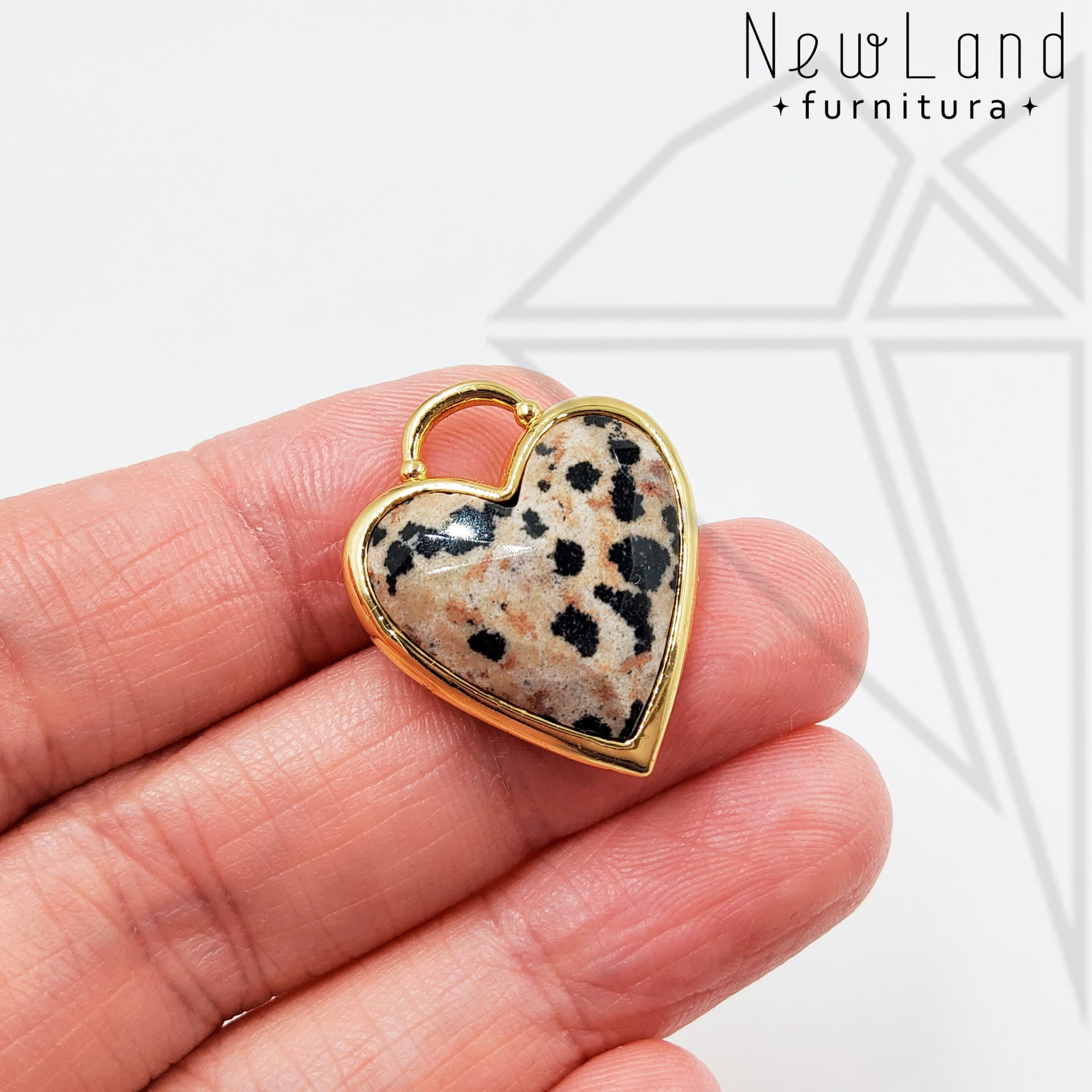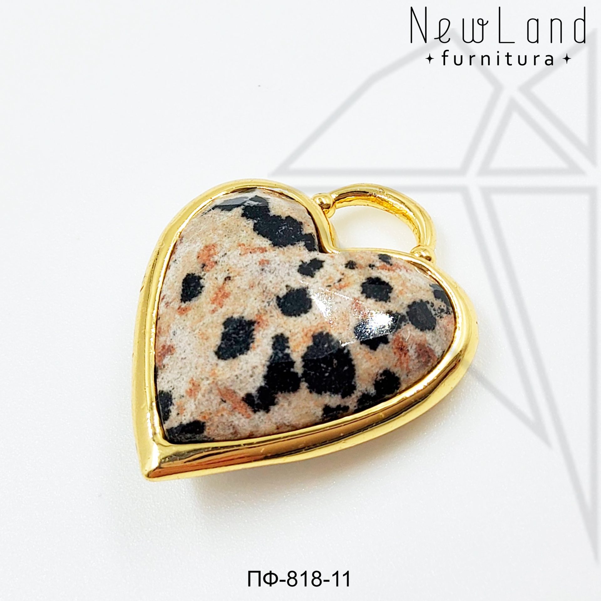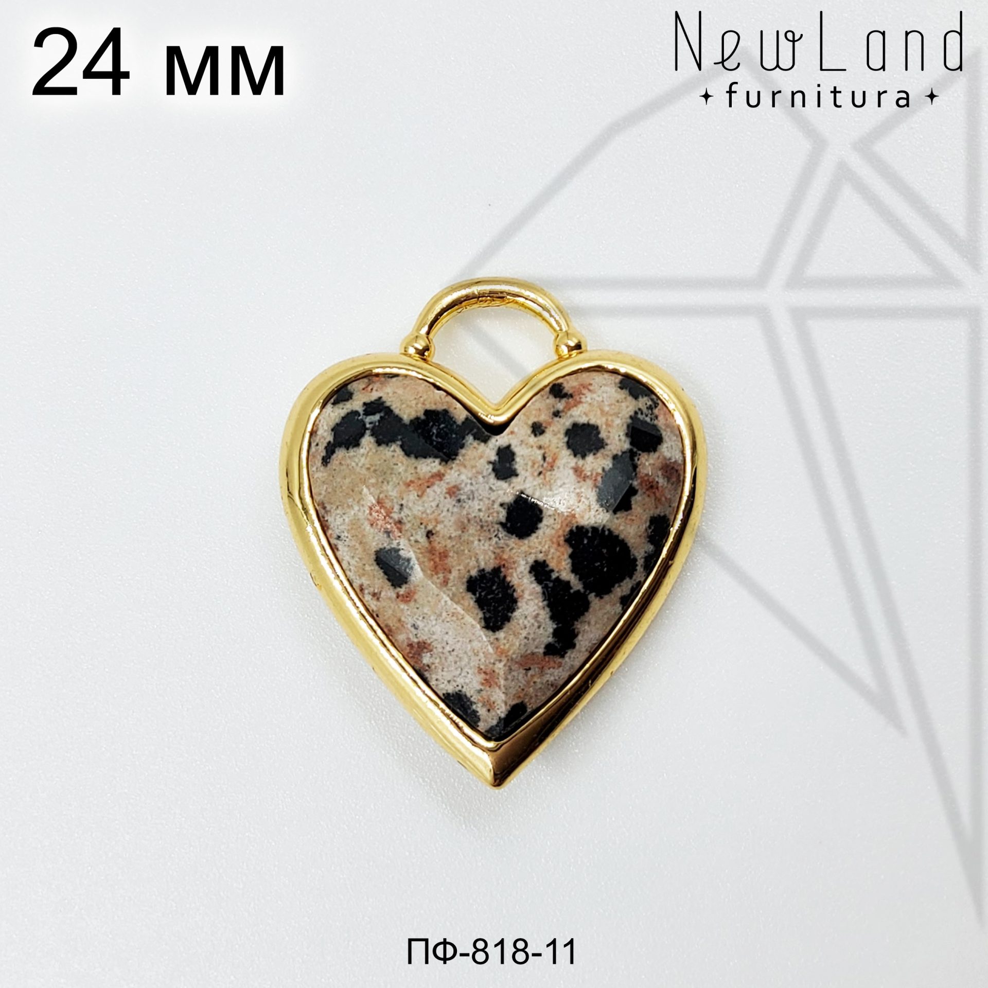 Подвеска в форме сердца с вставкой из далматиновой яшмы 24 мм класса люкс с позолоченным покрытием (по латуни)