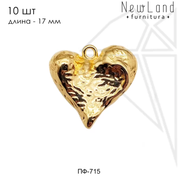 Подвеска в форме сердца 17 мм с фактурой класса люкс с позолоченным покрытием (по латуни).